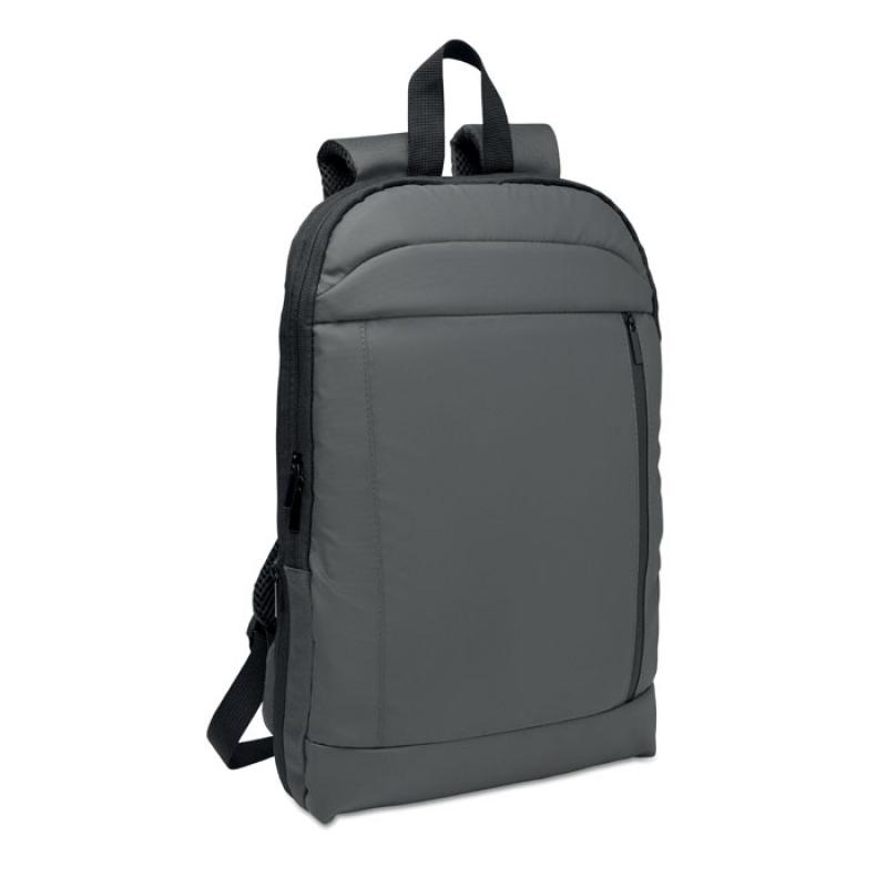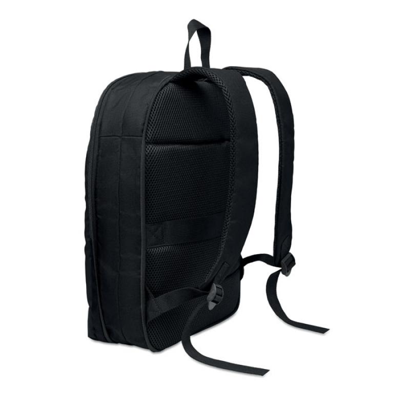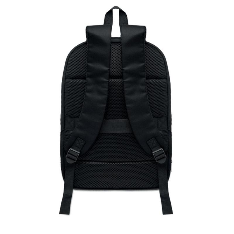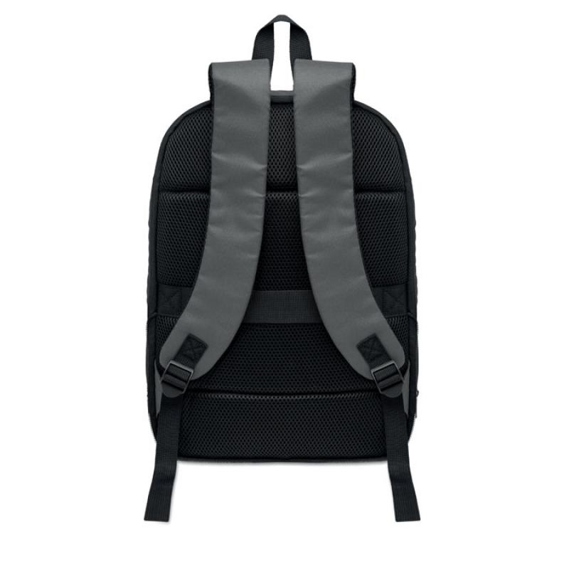 Mochila expandible de RPET 600D para ordenador de 16'' con revestimiento de PU en la parte delantera y forro de poliéster RPET. Bolsillo oculto con cremallera y compartimento acolchado para portátil, compartimento frontal , parte trasera de malla y correa para equipaje.Recipiente :