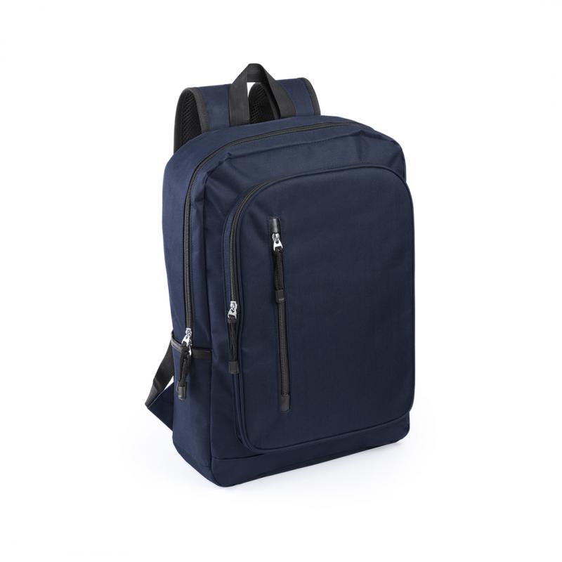 Resistente mochila de poliéster 600D con cierre de cremallera y bolsillos frontales. En sobrios colores, con espalda y cintas de hombros acolchadas, compartimento acolchado interior para portátil de hasta 15 pulgadas y cintas en tiradores para fácil apertura.