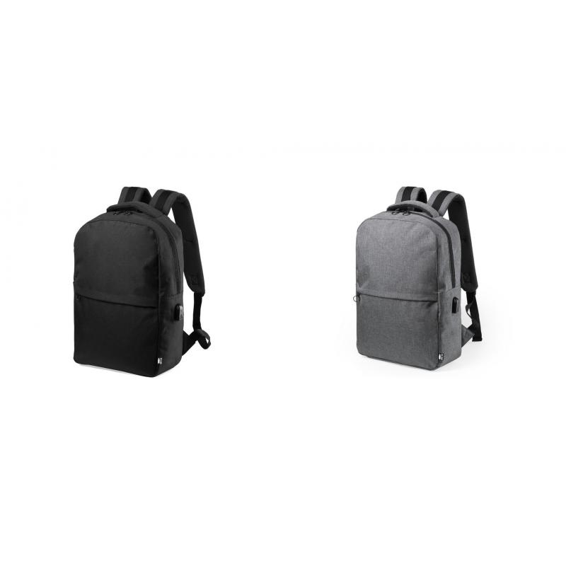 Mochila de negocios en resistente 600D RPET, elaborado a partir de plástico reciclado, para así fomentar la reutilización de residuos plásticos y ayudar a la sostenibilidad del planeta. Con cierre de cremallera de doble tirador y bolsillo en frontal. Interior con bolsillos acolchados para tablet de hasta 10 pulgadas y ordenador portátil de hasta 15 pulgadas, con estación de carga USB (cable incluido, batería auxiliar no incluida). Esquinas reforzadas, asa de transporte acolchada y accesorios en color negro. Espalda y cintas de hombros acolchadas y ajustables. Distintivo RPET en etiqueta,