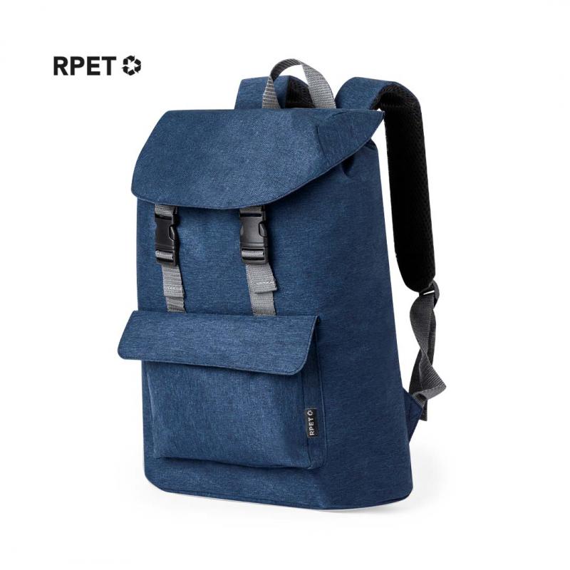 Mochila fabricada en resistente 600D RPET. El bolsillo principal se cierra con cordón y cuenta con una solapa con doble cierre, mientras que el bolsillo frontal tiene una solapa con cierre de velcro. Las cintas para los hombros son acolchadas y ajustables. Está disponible en varios colores y se presenta de manera individual en una bolsa reciclada. Logotipo RPET en etiqueta exterior.El material RPET se elabora a partir de plástico reciclado, para así fomentar la reutilización de residuos plásticos y ayudar a la sostenibilidad del planeta.