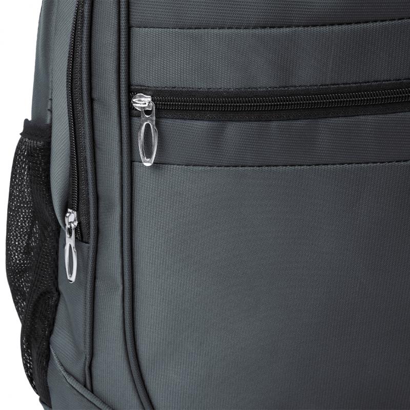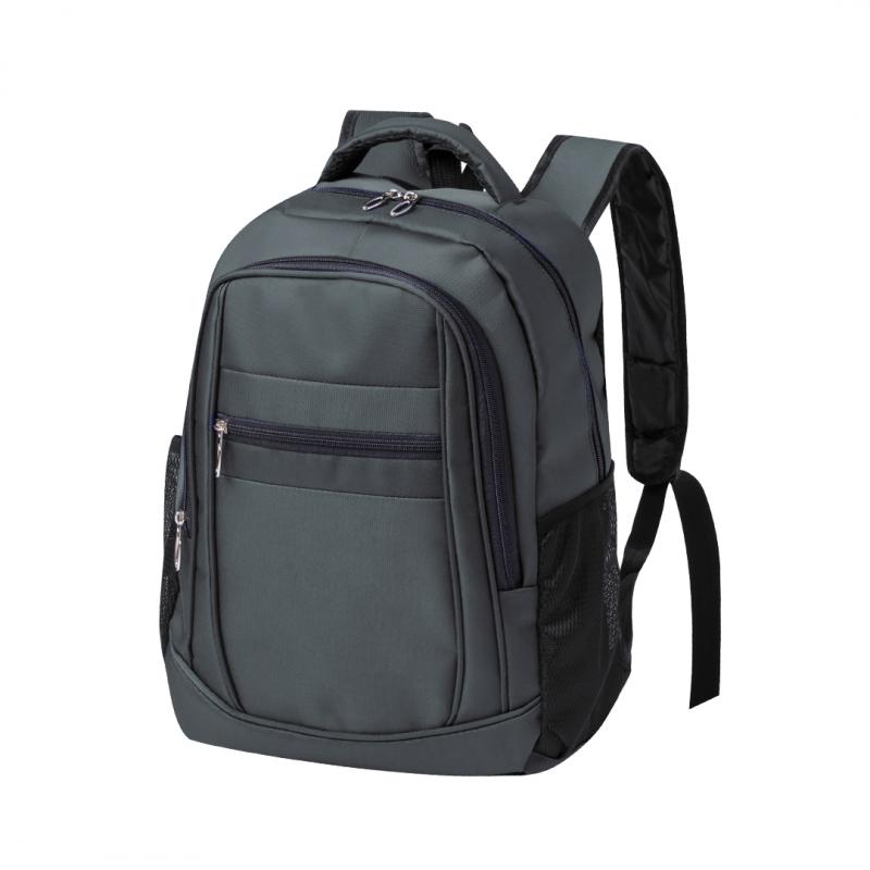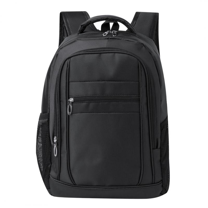 Mochila confeccionada en resistente 600D Nylon. Cuenta con un bolsillo principal con cierre de cremallera, y doble tirador. Interior con bolsillos acolchados destinados a tablet de hasta 10 pulgadas y portátil de hasta 15 pulgadas. Además, lleva dos bolsillos frontales adicionales. Tanto la espalda como las cintas de hombros son acolchadas y ajustables, fabricadas con un tejido transpirable. Presenta una cómoda cinta superior acolchada y bolsillos laterales de rejilla. Disponible en elegantes colores, con complementos en negro. Presentado en una bolsa individual.