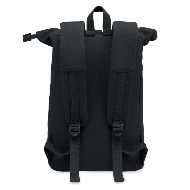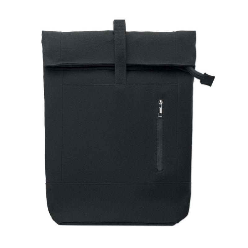 Mochila con cierre rolltop con cremallera para portátil de 15'', de algodón reciclado preconsumo y poliéster reciclado (70%/30%). Bolsillo frontal con cremallera. Espalda y hombreras acolchadas. 340gr/m².Recipiente :