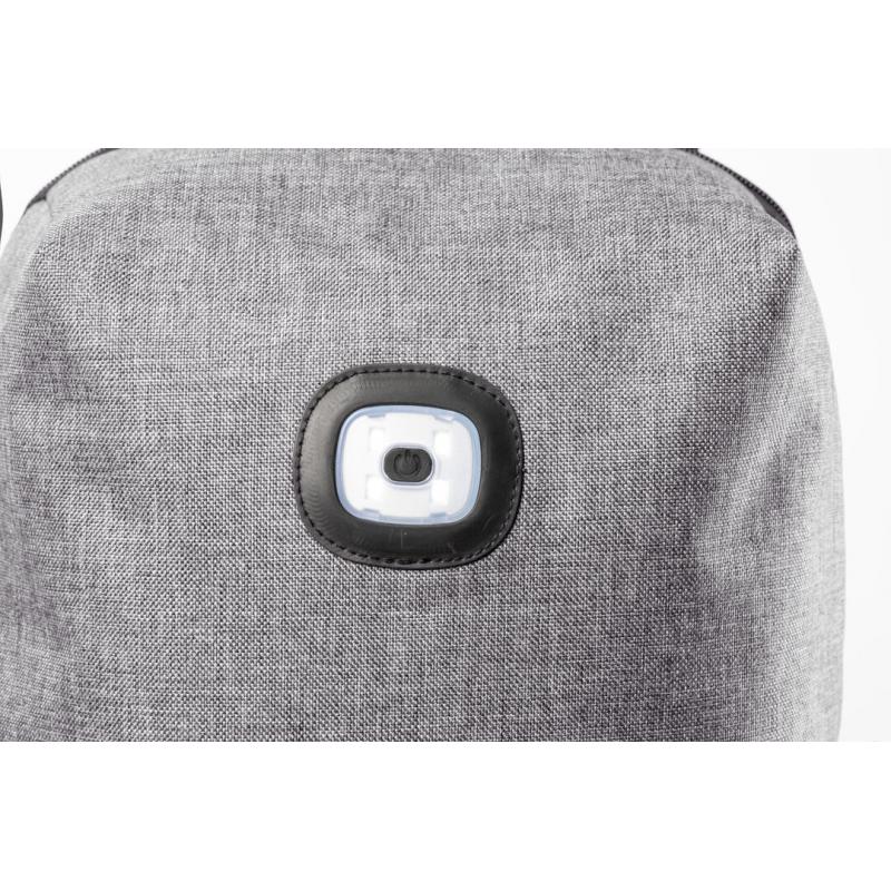 Mochila con indicadores luminosos multiusos, en resistente poliéster 600D de acabado bicolor. De diseño urbano, incluye luces parpadeantes y fijas, con 3 tipos de iluminación. Compartimento principal con cierre de cremallera de doble tirador, con cintas de hombros y espalda acolchadas y cintas de ajuste regulables. Alimentación a pilas (de botón incluidas).
