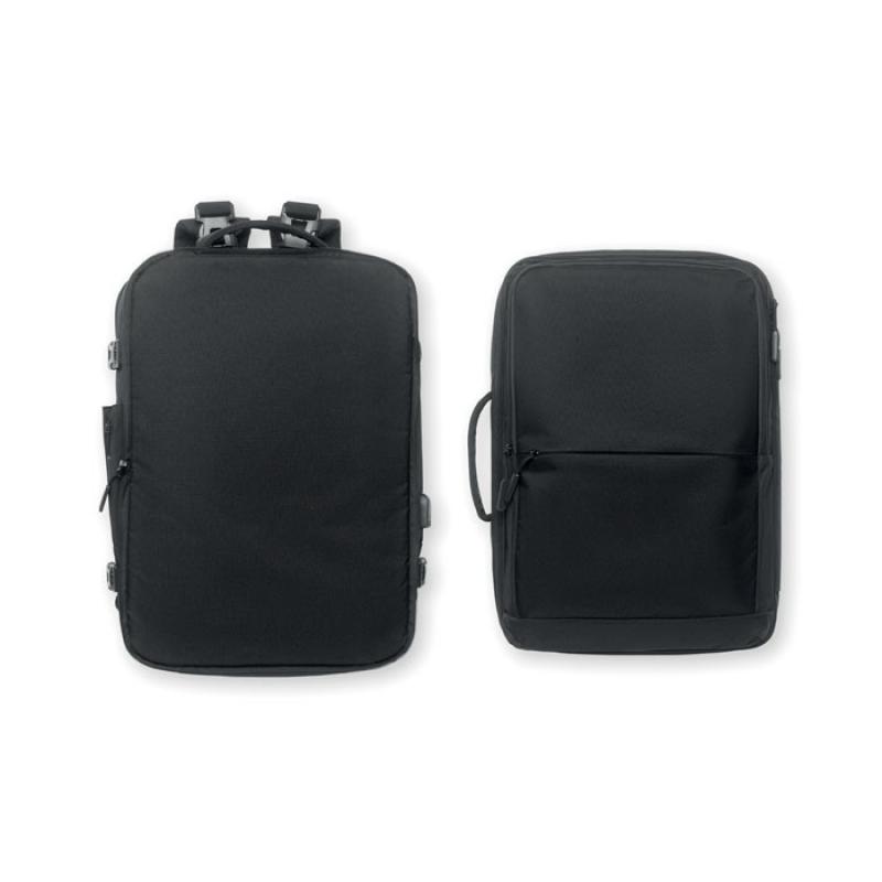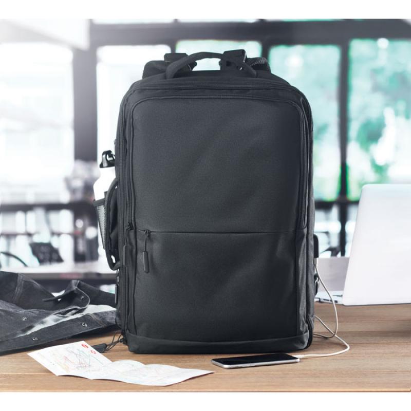 Mochila Travel Tech de poliéster 600D RPET. Modular / incluye varios compartimentos.
