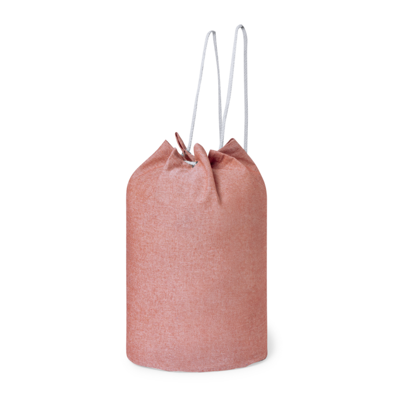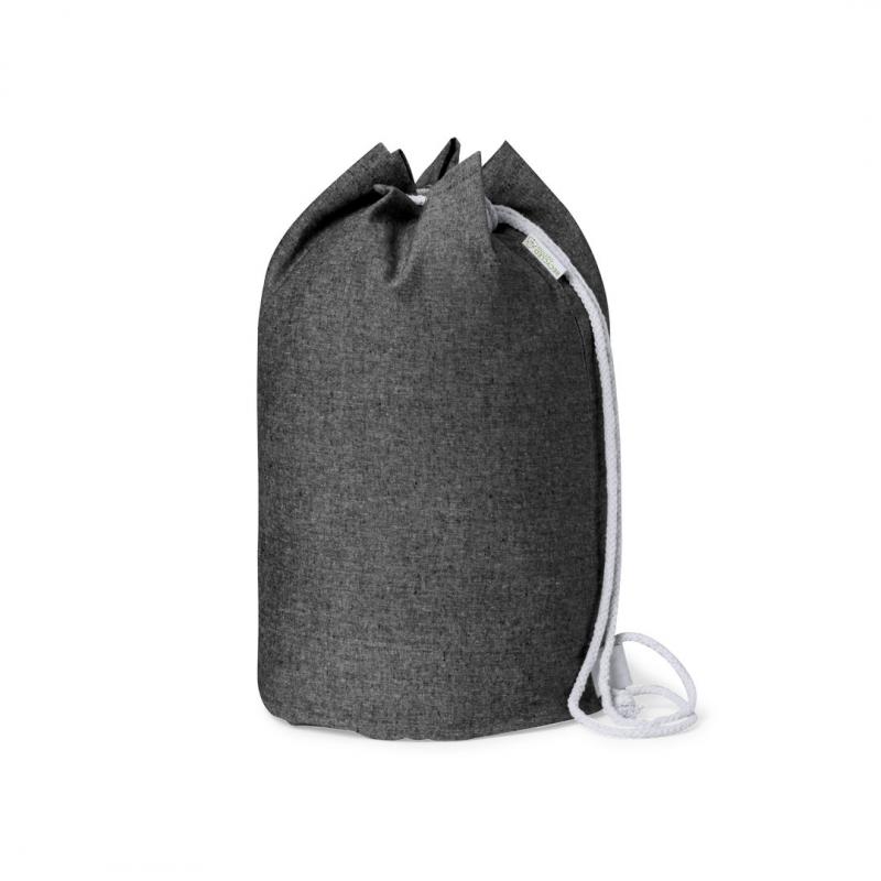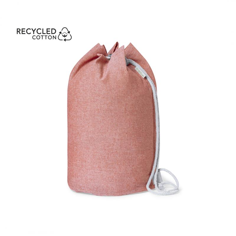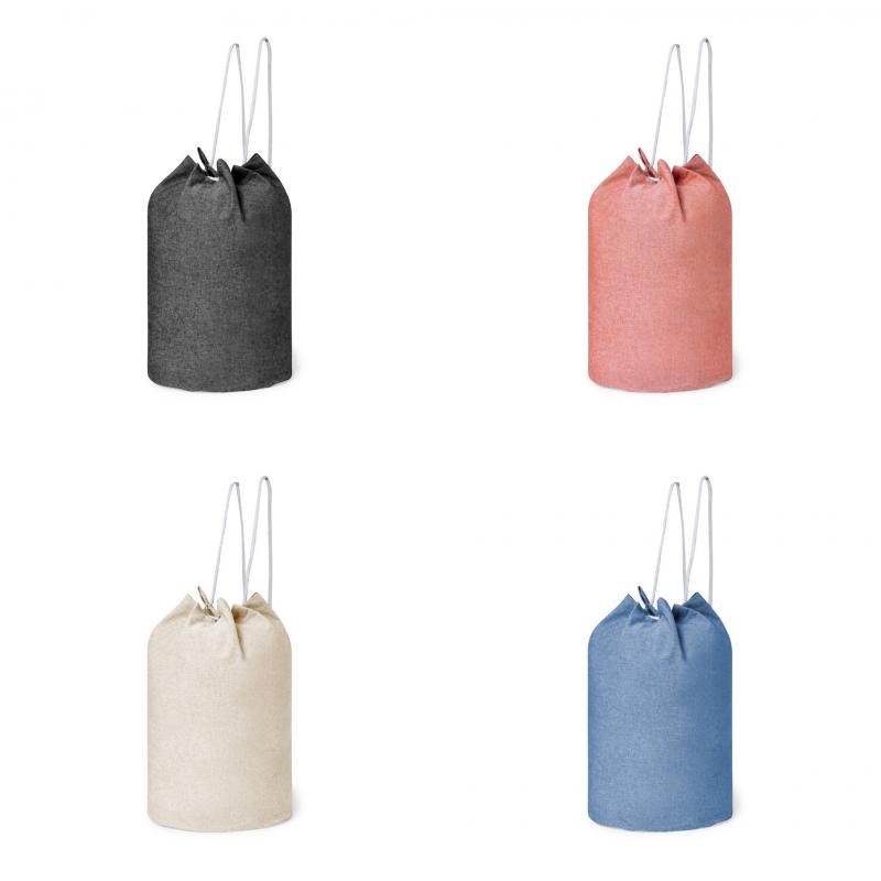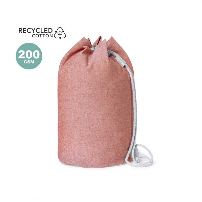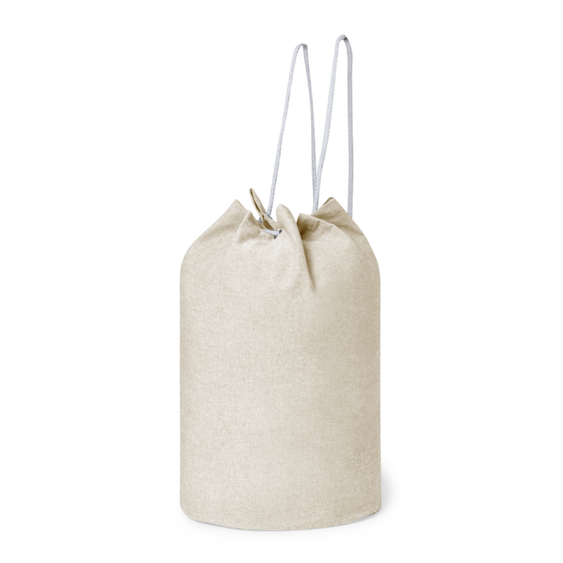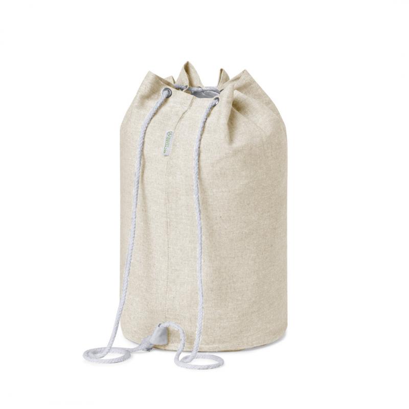 Petate de línea nature fabricado en 100% algodón reciclado de 200g/m2. Con cordón de cierre en algodón y resistentes argollas metálicas. Disponible en variada gama de colores, con distintivo algodón reciclado en etiqueta exterior. Certificación GRS (Global Recycled Standard / Estándar de Reciclaje Global), que garantiza el origen reciclado del material usado para fabricar el producto