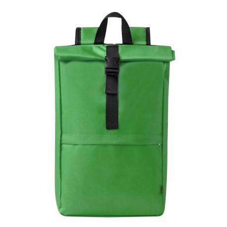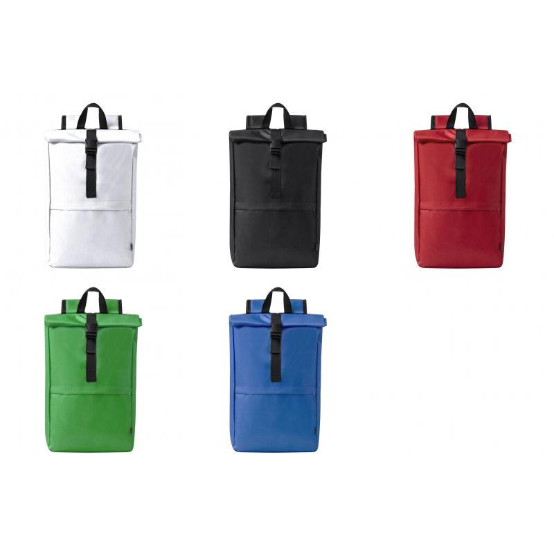 Mochila fabricada en resistente 600D RPET. Cuenta con un bolsillo principal que se cierra mediante hebilla y un bolsillo frontal adicional con cierre de cremallera. Las cintas para los hombros son acolchadas y ajustables. Logotipo RPET en la etiqueta exterior. Disponible en una variada gama de colores, con accesorios en negro. Presentada individualmente en bolsa reciclada.El material RPET se elabora a partir de plástico reciclado, para así fomentar la reutilización de residuos plásticos y ayudar a la sostenibilidad del planeta.