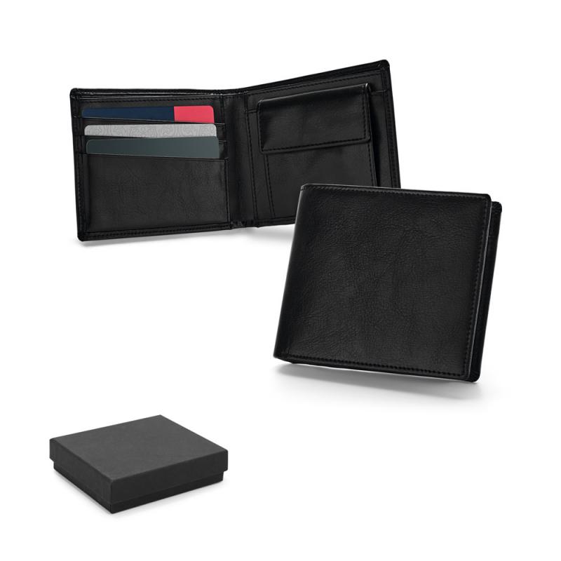 Cartera de piel con monedero, billetero y capacidad para 9 tarjetas. Se suministra en caja de regaloRecipiente :
