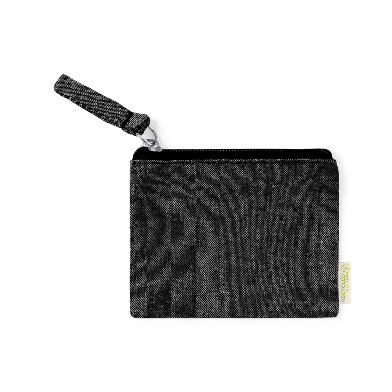Monedero fabricado en 100% algodón reciclado. Compartimento principal con cierre de cremallera y tirador a juego. Con algodón distintivo reciclado en la etiqueta exterior y disponible en variada gama de colores. Certificación GRS (Global Recycled Standard / Estándar de Reciclaje Global), que garantiza el origen reciclado del material usado para fabricar el producto