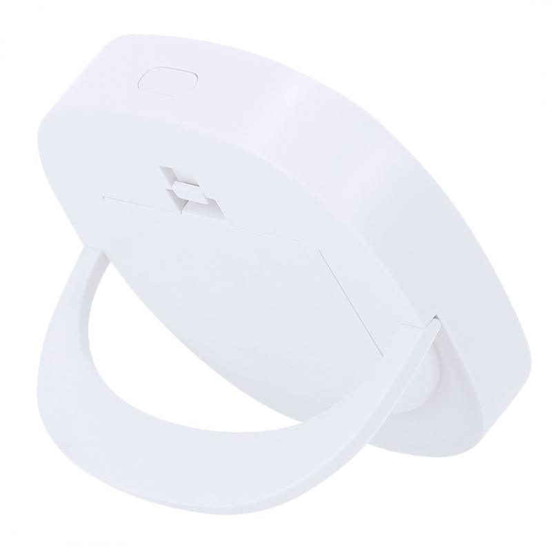 Espejo plegable con luz. Con 2 posiciones de luz regulables y soporte en parte trasera. Con aumento 1x. Incluye botón ON/OFF en parte delantera. Alimentación a pilas -3xAAA- no incluidas. Su diseño compacto y plegable facilita su transporte.