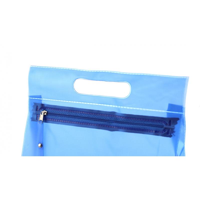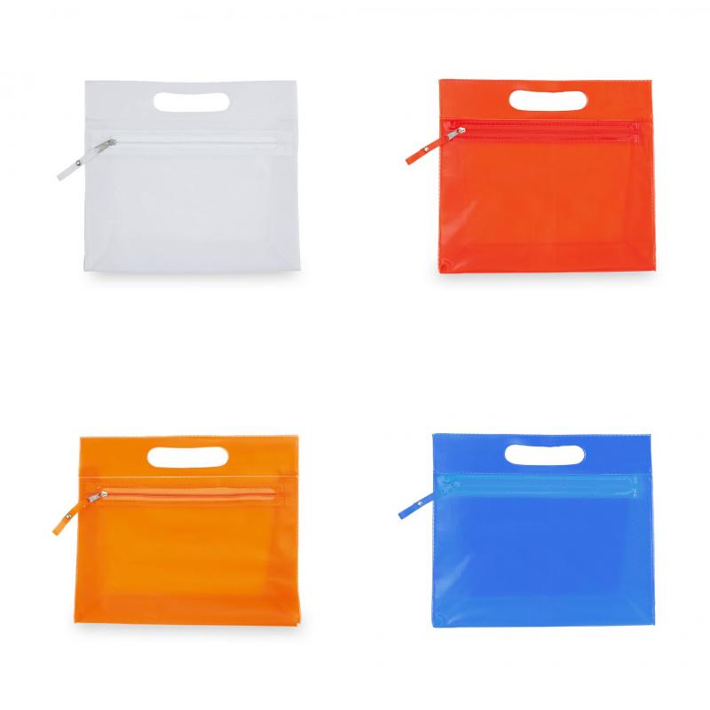 Neceser multiusos en resistente PVC translúcido de variada gama en vivos colores. Con resistente asa troquelada y cierre de cremallera a juego, con cinta en tirador para fácil apertura.