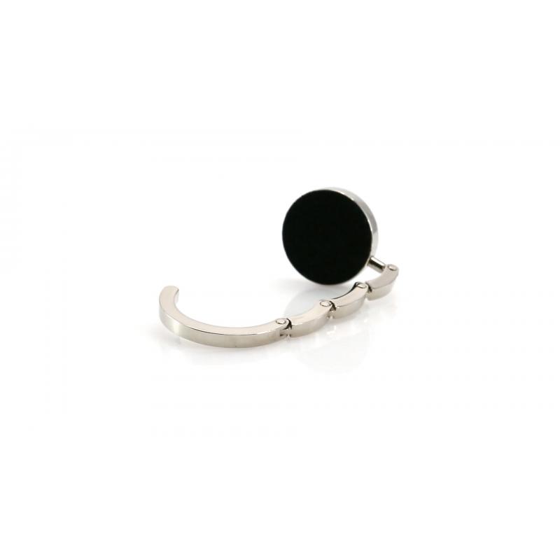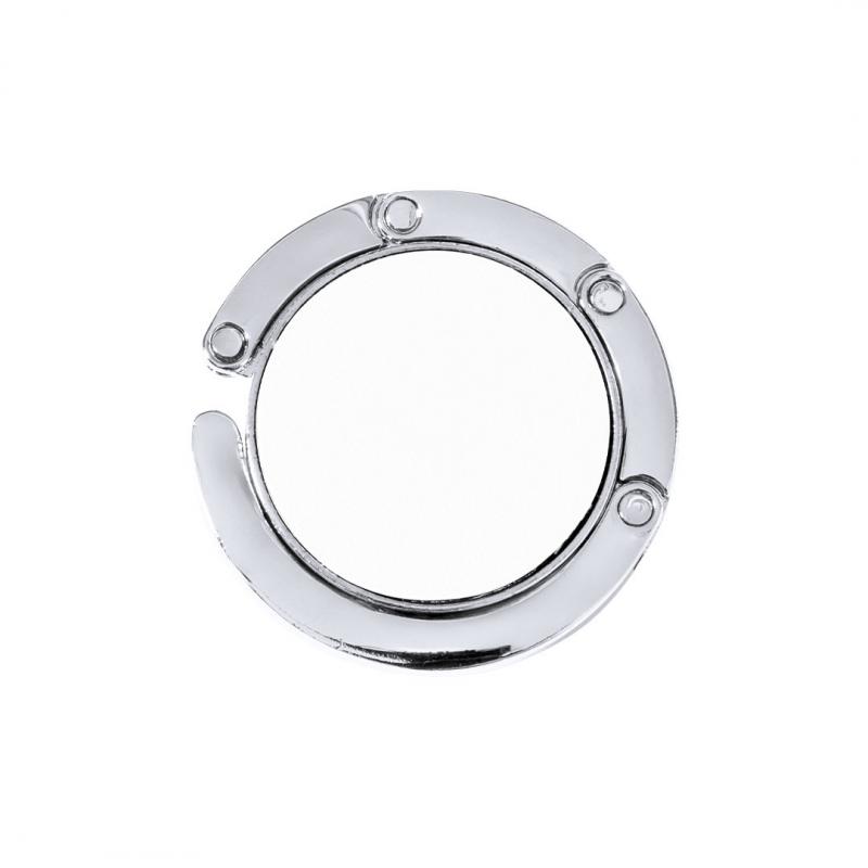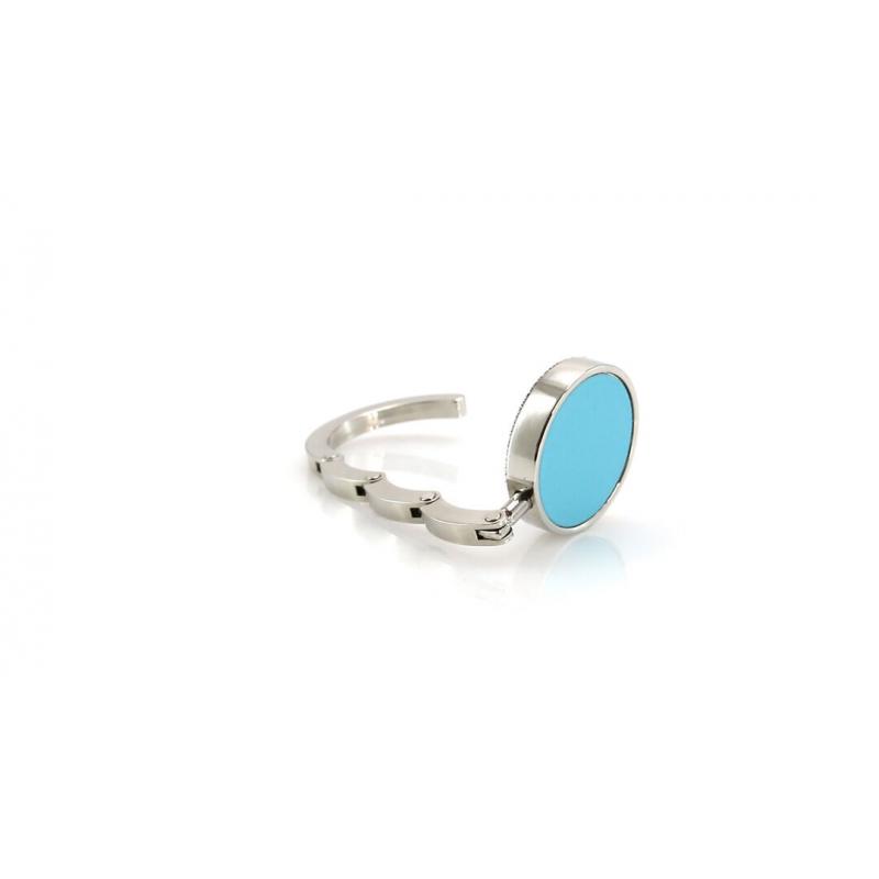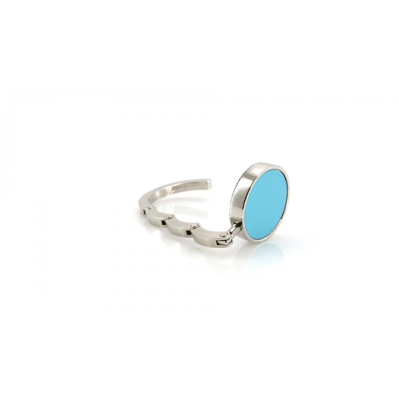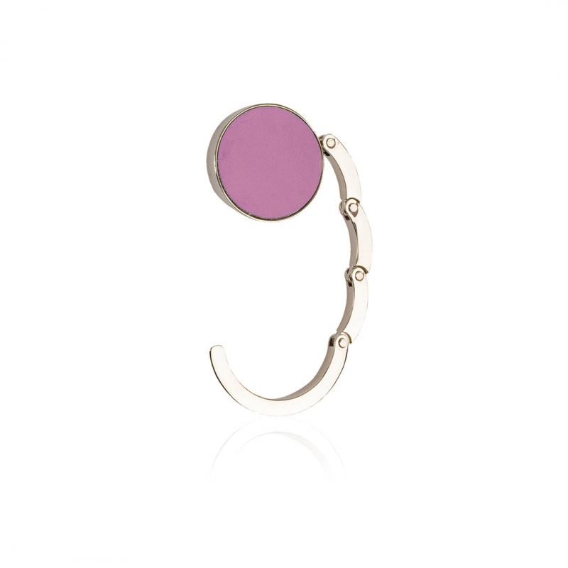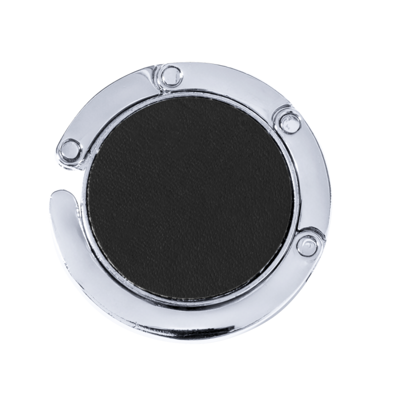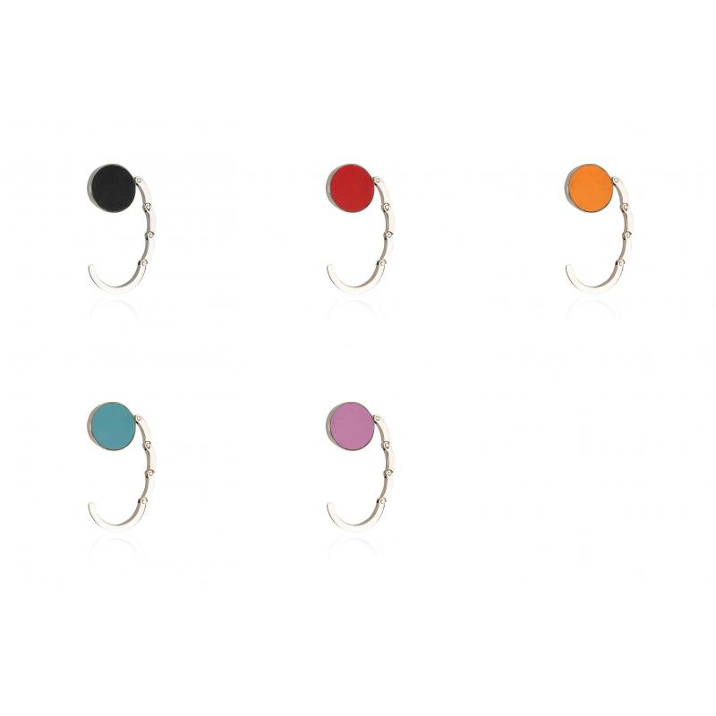 Cuelgabolsos metálico plegable con corona en polipiel de vivos colores. Presentado en estuche individual con interior troquelado.