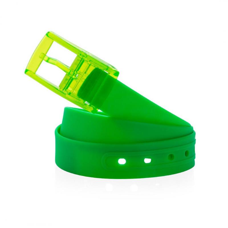 Original cinturón en suave siliona de 117 cm de largo, con hebilla de acabado transparente a juego. Disponible en variada gama de vivos colores.
