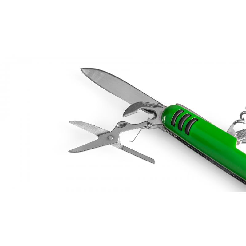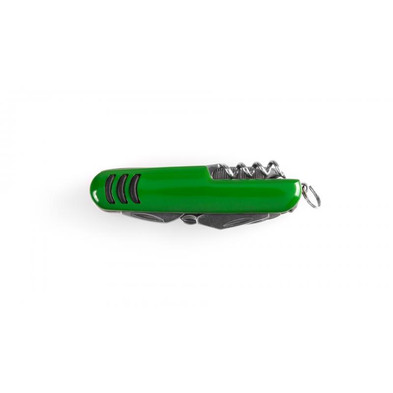 Navaja multiusos con accesorios de acero inox de 9 funciones y mango con accesorio anideslizante en vivos colores. Presentada en caja individual.