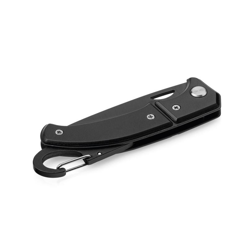 Navaja de bolsillo fabricada en acero inoxidable y metal, con cierre de seguridad y mosquetón. Suministrado en una caja de regaloRecipiente :