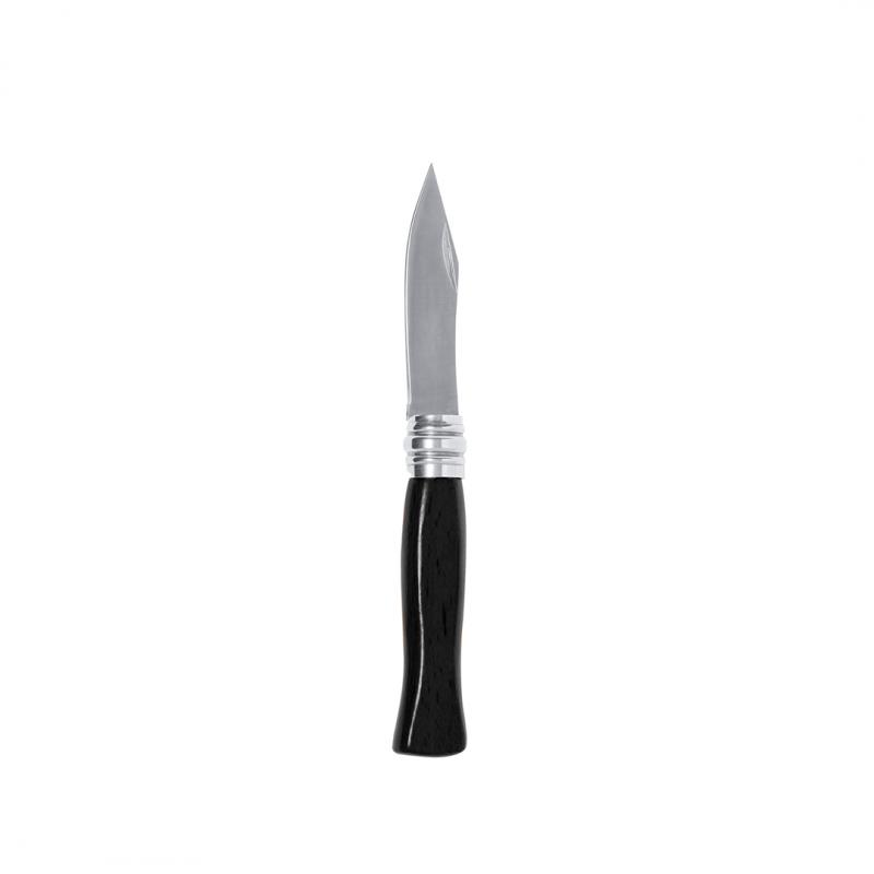 Navaja fabricada en resistente acero inox, con mango ergonómico fabricado en madera natural lacada y con anilla metálica de bloqueo. La aleación de la hoja garantiza resistencia a la corrosión y abrasión, siendo ideal para el uso frecuente con materiales duros. La hoja es de Tipo Clip, que se caracteriza por su forma puntiaguda y destaca por su versatilidad a la hora de usarla. Disponible en variada gama de colores y presentada individualmente en caja blanca.