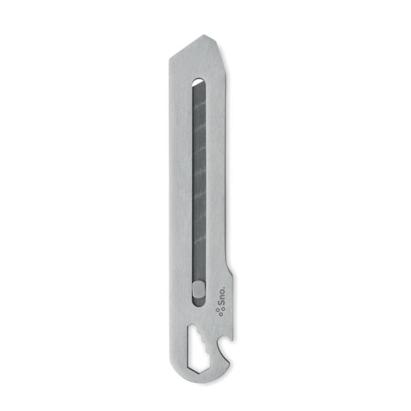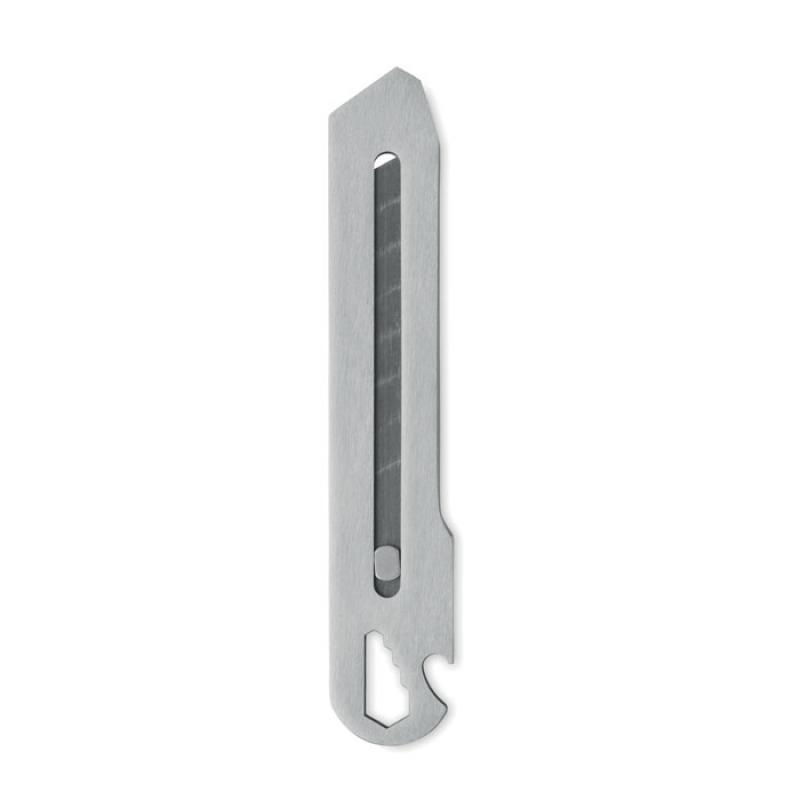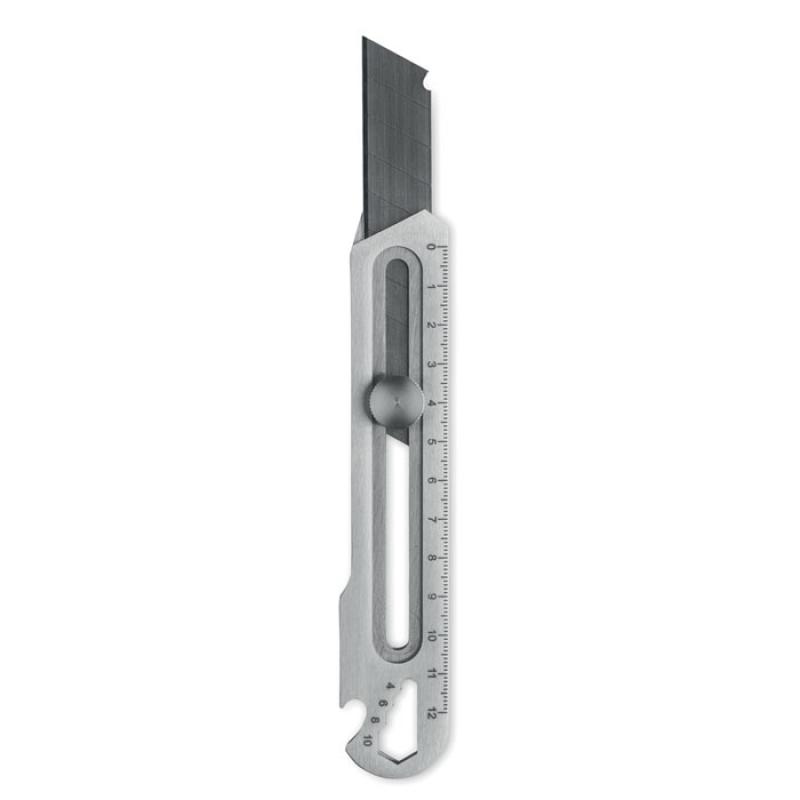 Cúter retráctil de acero inoxidable con 8 hojas de acero al carbono, abridor de botellas, llave inglesa y regla.Recipiente :