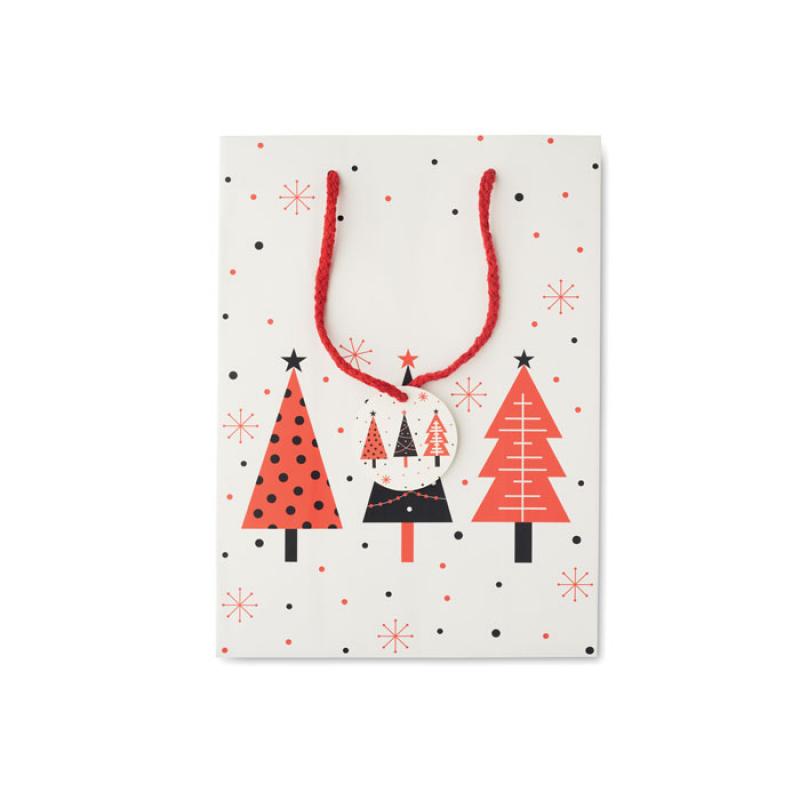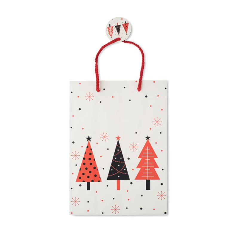 Bolsa de papel de regalo mediana de Navidad (30% reciclado) con etiqueta incluida. 150 gr/m². FSC®-certified | FSC MIX, P5.3, FSC-C213206Recipiente :