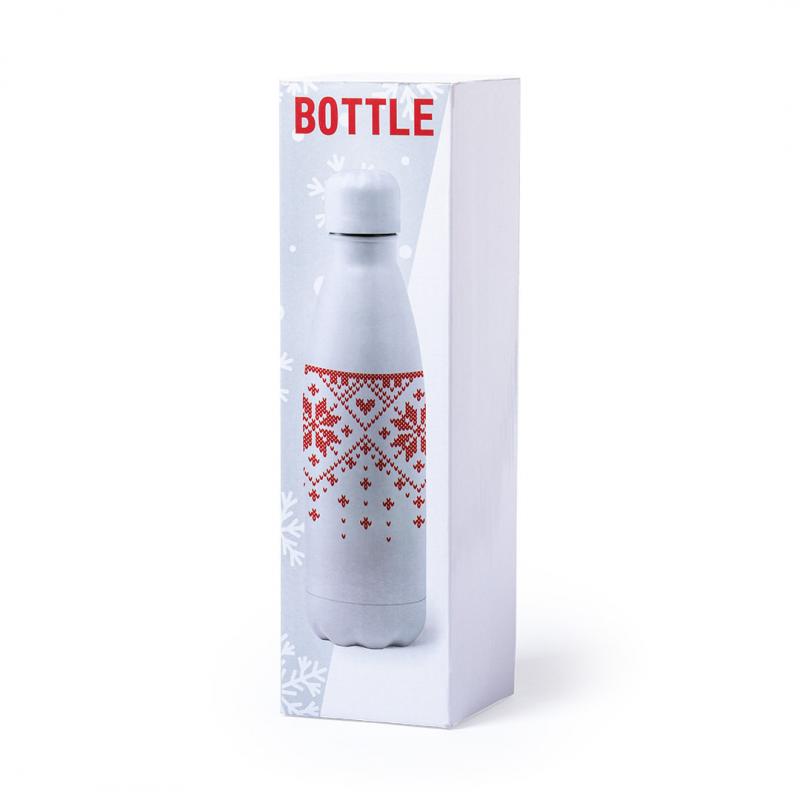 Bidón de 790ml de capacidad con cuerpo de acero inox brillo y diseño bicolor de navidad. Con tapón de seguridad y presentado en atractiva caja de diseño.