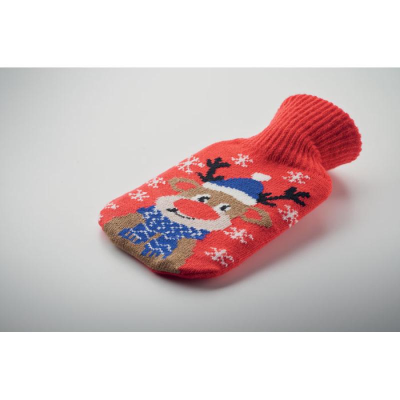 Bolsa de agua caliente con jersey de motivos navideños. Se utiliza para dar calor, normalmente en la cama, pero también para aplicar calor en una parte específica del cuerpo. Capacidad de 250 ml.Recipiente :