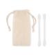Set de 2 bastoncillos de silicona reutilizables y lavables con 3 cabezales diferentes. Presentados en bolsa de algodón con cordón.Recipiente :