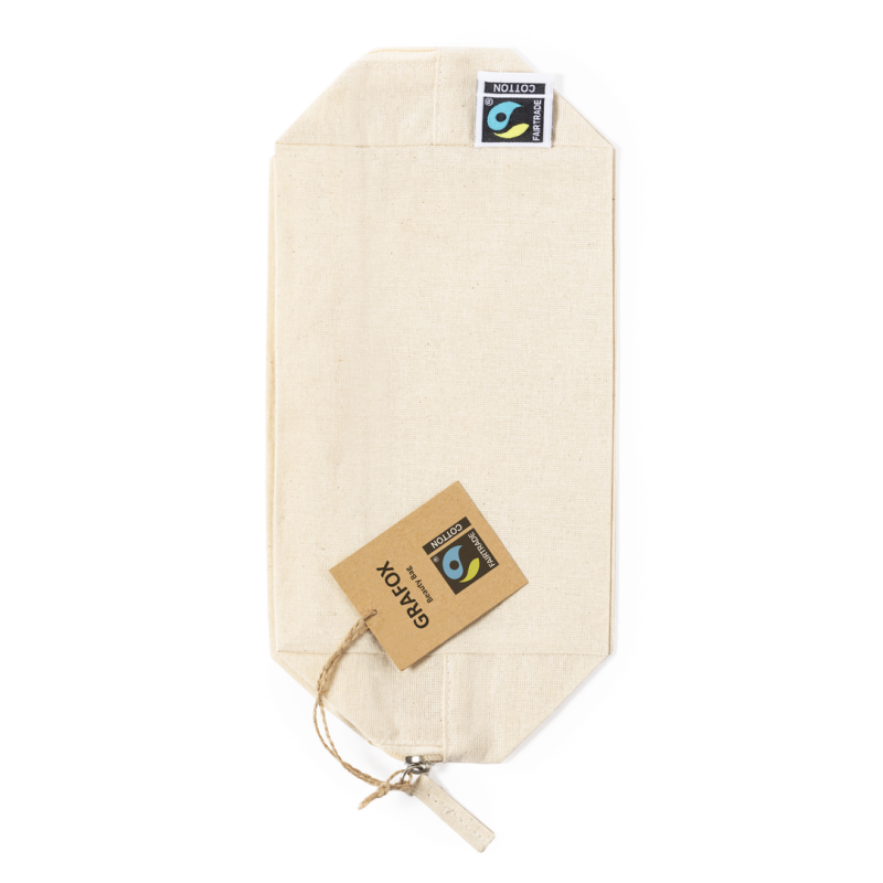 Neceser de línea nature, fabricado en 100% algodón de 180g/m2 en tono natural. Con certificación Fairtrade (Comercio Justo) un sistema comercial solidario y alternativo al convencional que persigue el desarrollo de los pueblos y la lucha contra la pobreza. Compartimento principal con cierre de cremallera y tirador a juego, incluida etiqueta Fairtrade y hangtag distintivo en cartón reciclado.