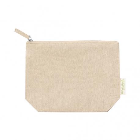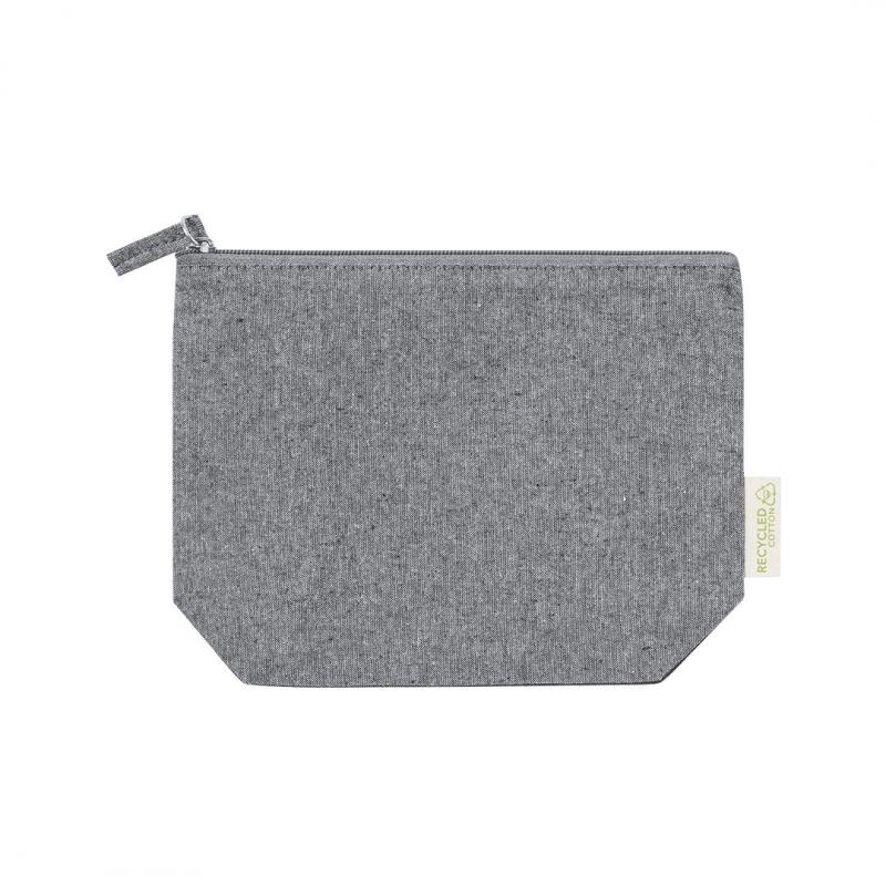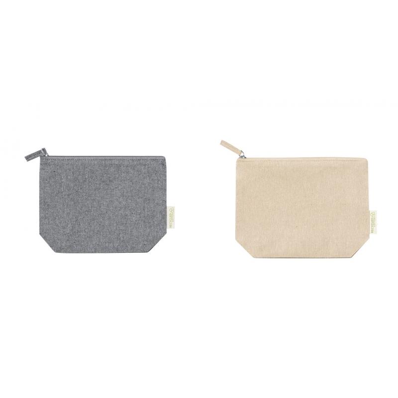 Neceser en resistente material 100% algodón reciclado GRS de 180g/m2. Certificación GRS (Global Recycled Standard / Estándar de Reciclaje Global), que garantiza el origen reciclado del material usado para fabricar el producto. Cierre de cremallera con tirador a juego y distintivo eco en etiqueta exterior.