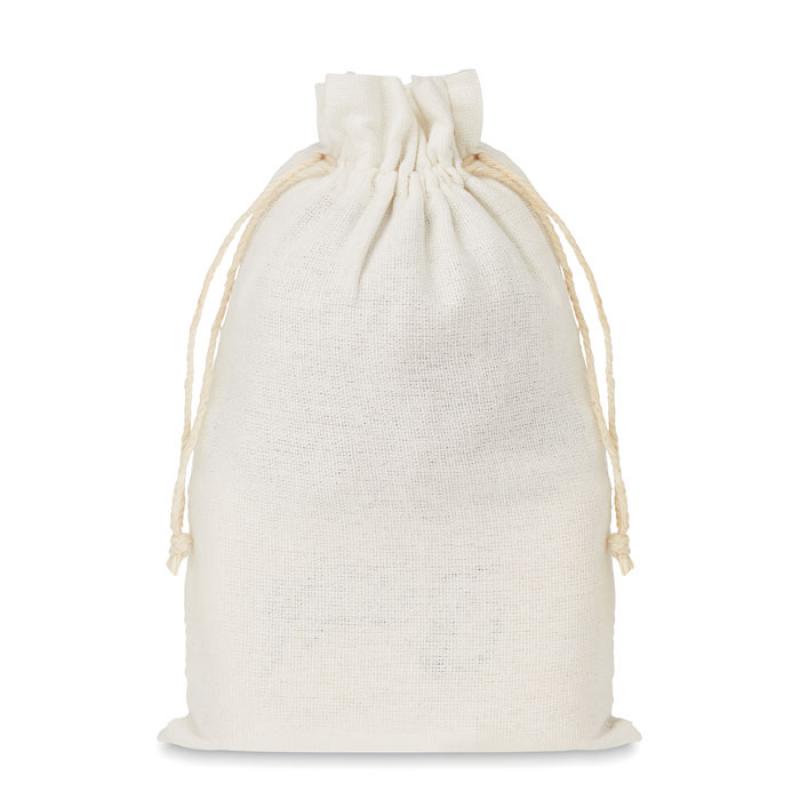 Set de baño que incluye esponja, piedra para peeling y puff presentado en bolsa de jute y ventana de PEVA.