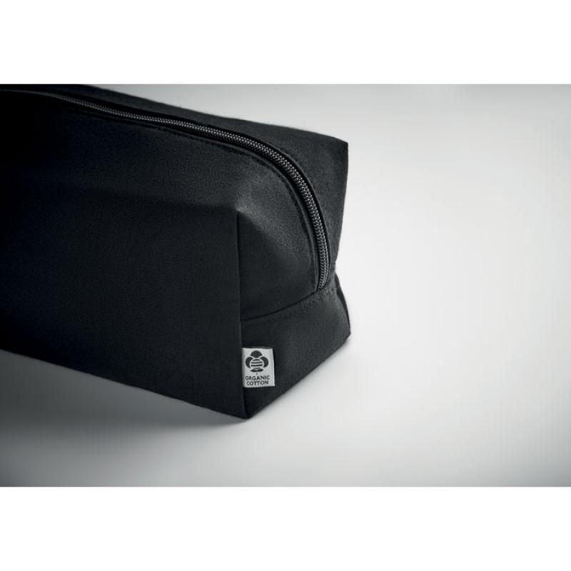 Neceser de canvas orgánico 220 gr/m²con una cremallera. El asa lateral y el fondo son de PU. El forro es de algodón orgánico de 140 gr/m².
