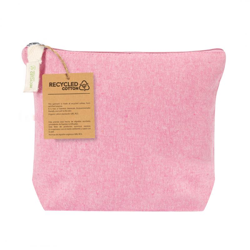 Estuche elaborado en algodón reciclado. Compartimento principal de cierre de cremallera y tirador de color natural. Disponible en variada gama de vivos colores. Con logotipo algodón reciclado en etiqueta y presentado en bolsa individual reciclada.