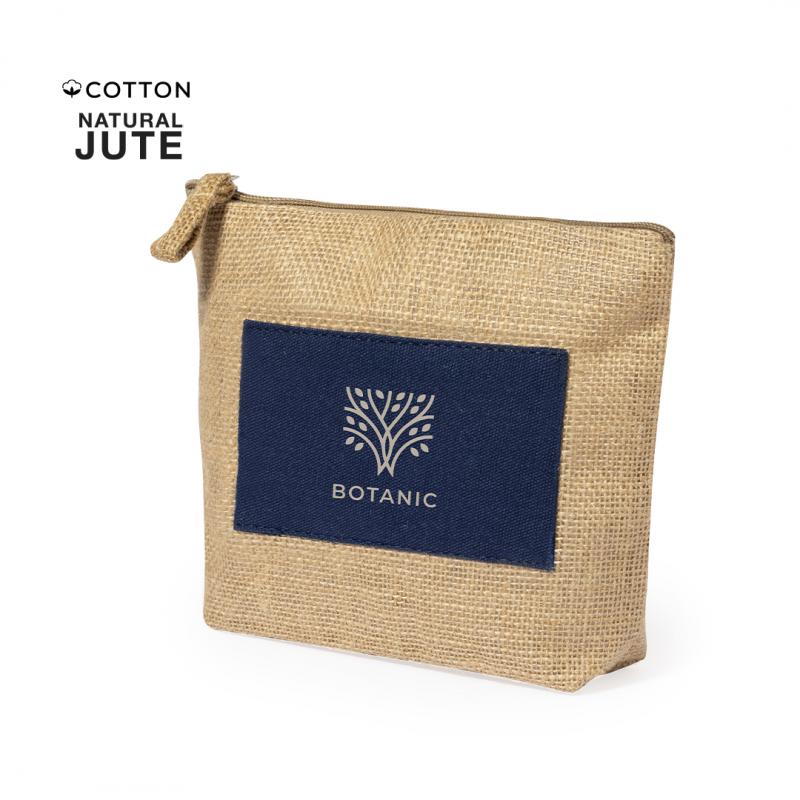 Neceser multiusos en combinación de yute laminado y algodón natural. Con cierre de cremallera y tirador en yute a juego. Parte central de algodón en variados colores.