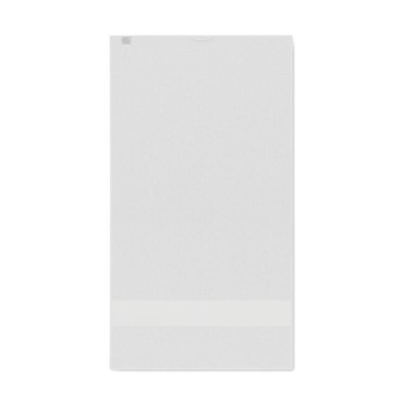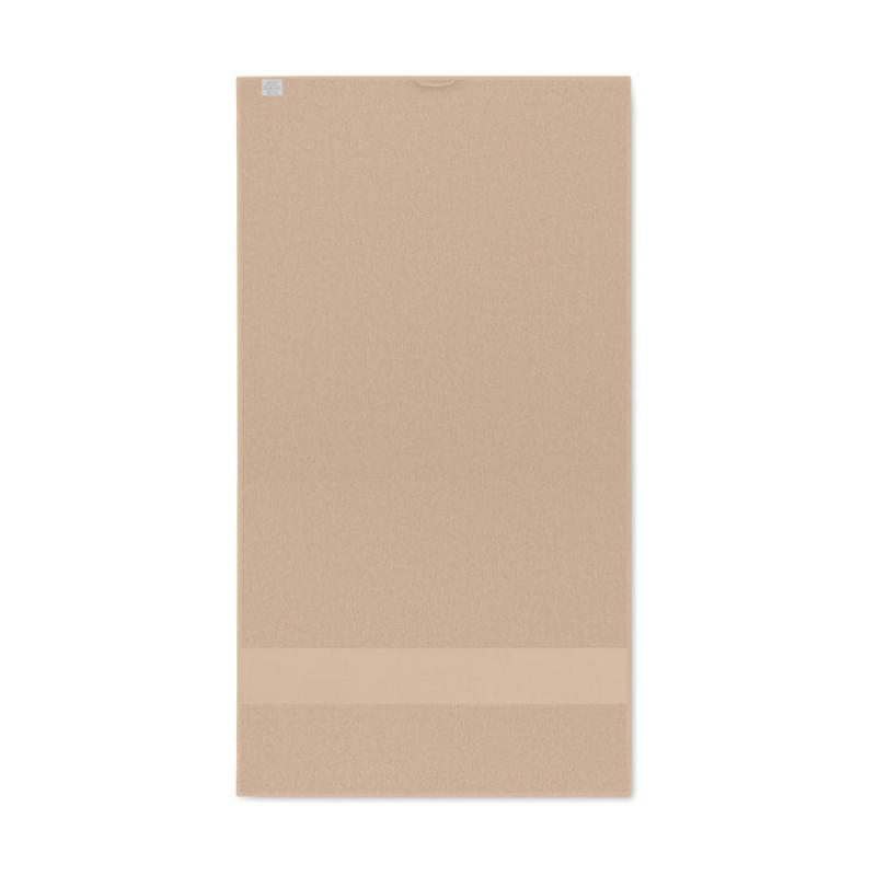 Toalla de rizo de algodón orgánico 100% de 360 gr. Tamaño 50x30 cm. El rizo es suave y absorbente.Recipiente :