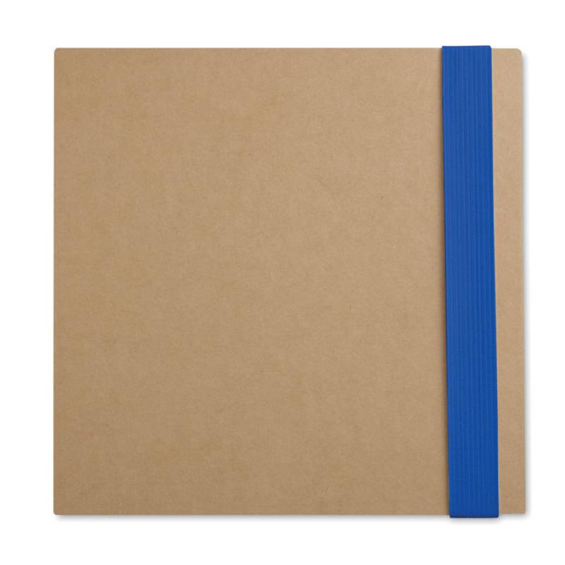 Libreta de papel reciclado con notas adhesivas, bolígrafo y 25 hojas blancas para escribir.
