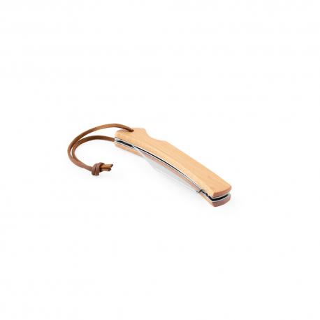 Navaja de afeitar con hoja de acero inoxidable y mango de bambú, con cierre de seguridad. Contiene un asa de cuerda para facilitar su transporte y almacenamiento. Se entrega en una caja de regalo de papel kraft. Como el producto está fabricado con materiales naturales, el color como el resultado de la impresión pueden variar entre unos y otros productosRecipiente :