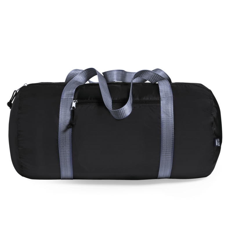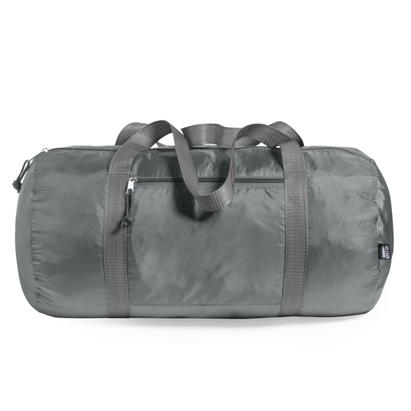 Bolso multiusos en suave poliéster 290T RPET, elaborado a partir de plástico reciclado, para así fomentar la reutilización de residuos plásticos y ayudar a la sostenibilidad del planeta. En desenfadado diseño bicolor retro, con bolsillo principal y frontal con cierres de cremallera y tiradores con cuerdas. Resistentes asas de nylon en contraste alrededor del cuerpo en color gris. Disponible en variada gama de colores, con distintivo RPET en etiqueta.