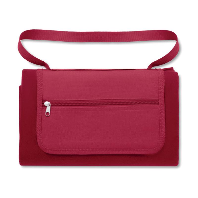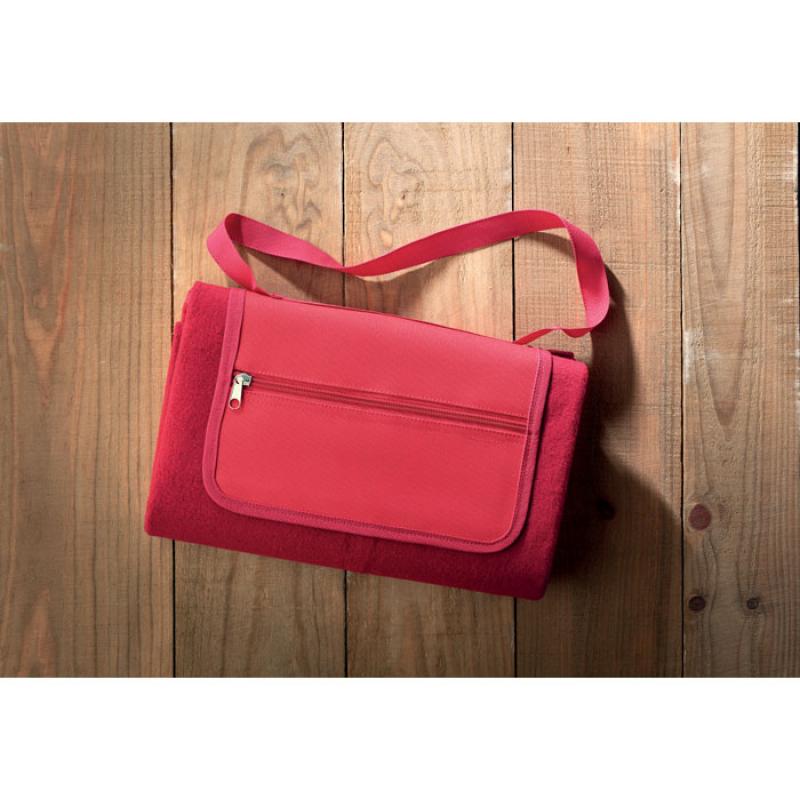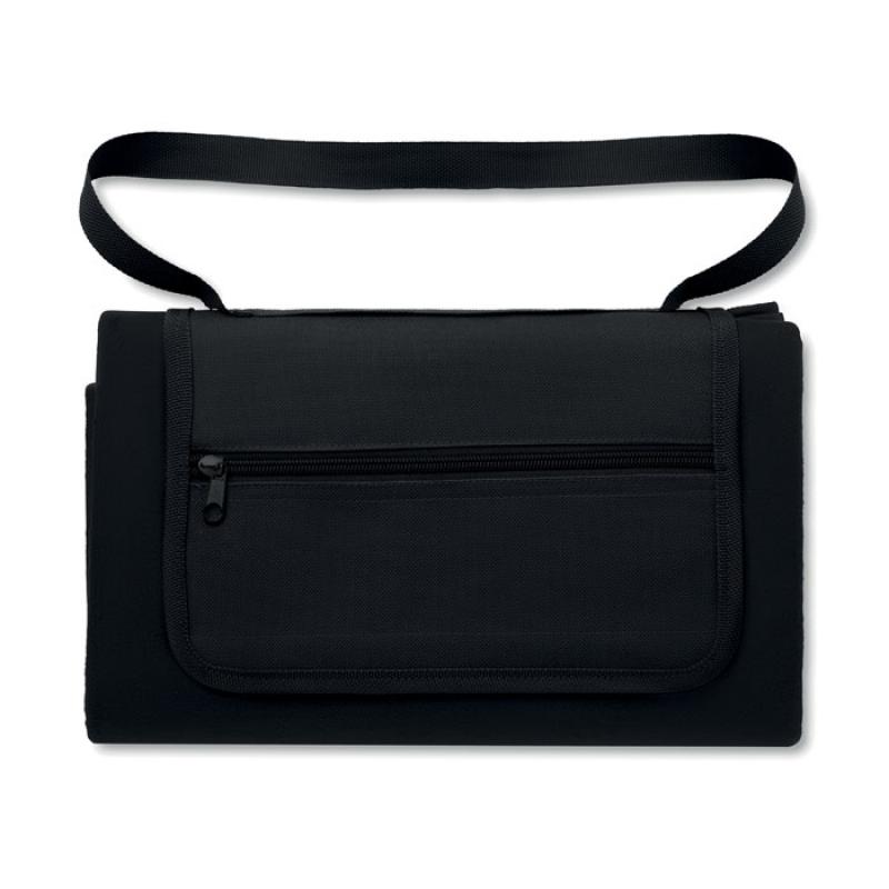 Mantel para picnic plegable en forma de bolsa. Forro polar y reverso impermeable de PEVA.