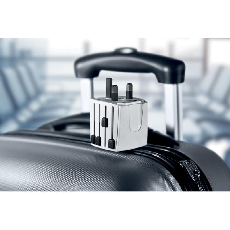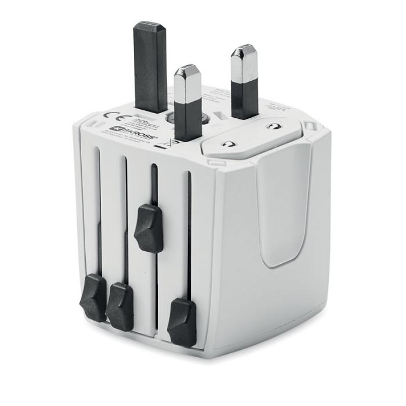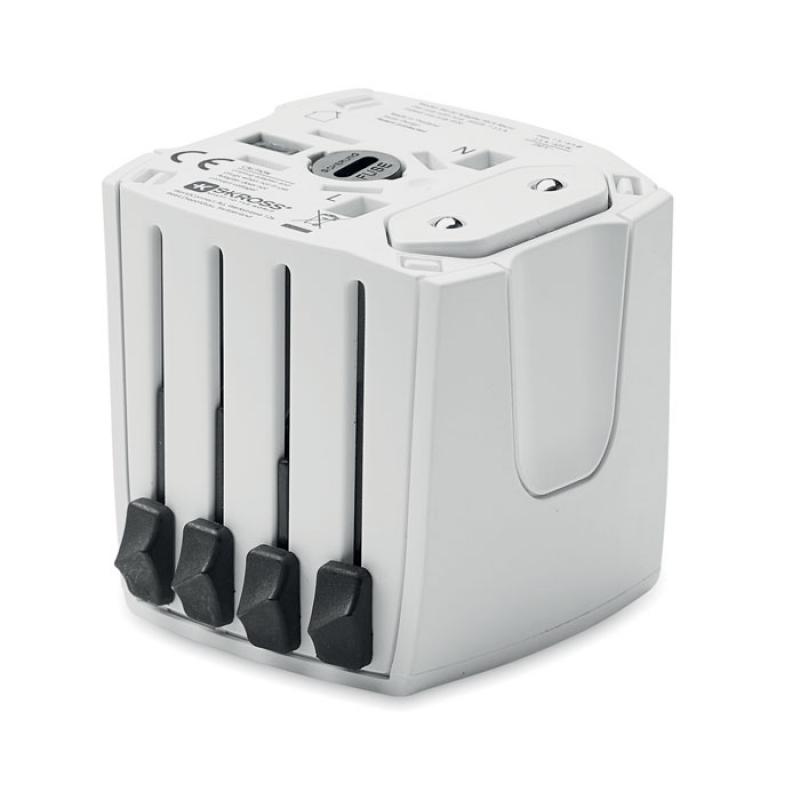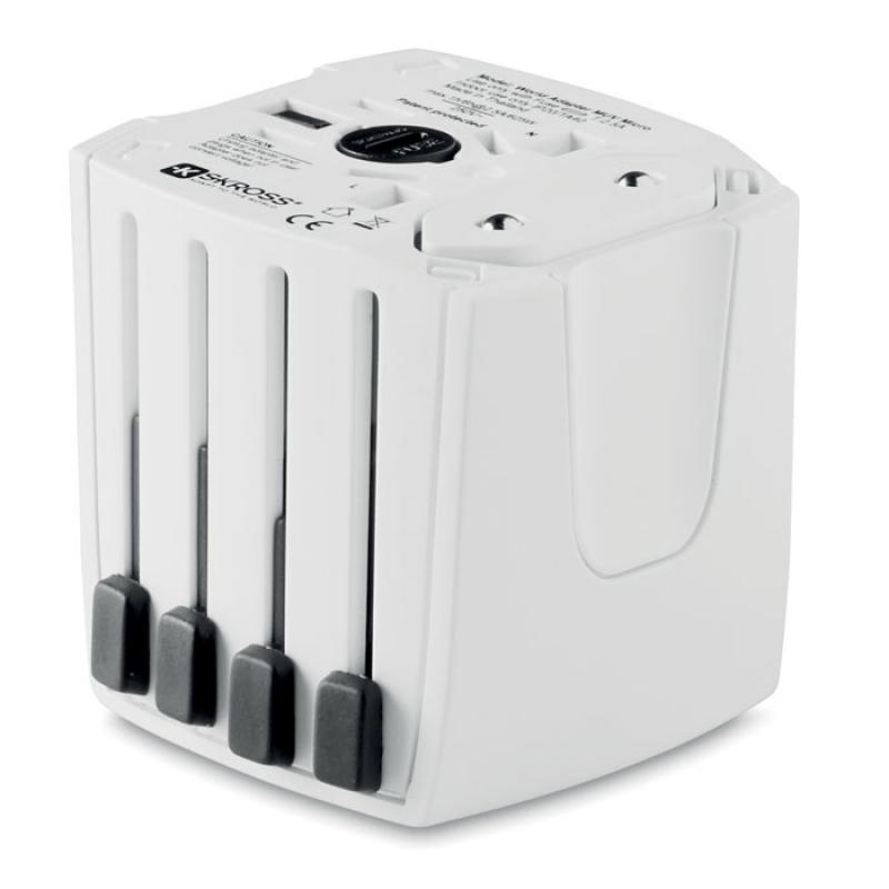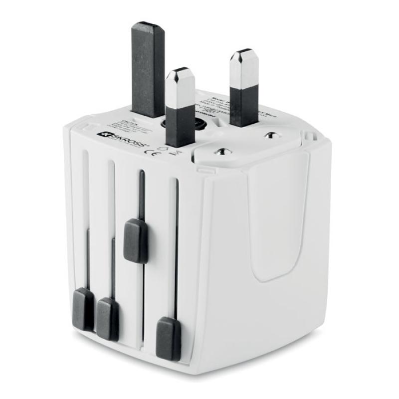 Adaptador de viaje universal SKROSS. Conexiones aptas para Europa, USA / Japón, Australia / China. Adaptador de 2 polos, sin toma de tierra. Cumple con todas las normativas internacionales de seguridad. Seguro para los niños.