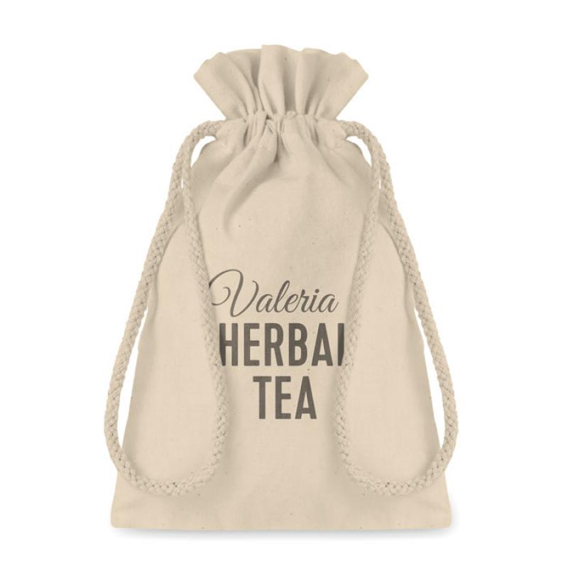 Bolsa de algodón pequeña para regalos. Aprox. 14 x 22cm. 105 gr / m². Producido bajo certificado estándar para controlar el uso de sustancias nocivas en textil.
