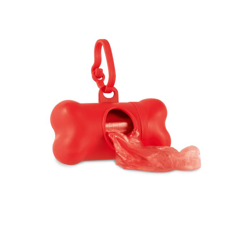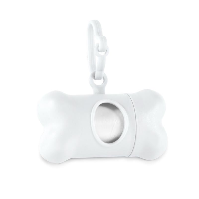 Dispensador de bolsas en forma de hueso, hecho en PP. Incluye 20 bolsas de plástico higiénicas para las deposiciones de los perrosRecipiente :