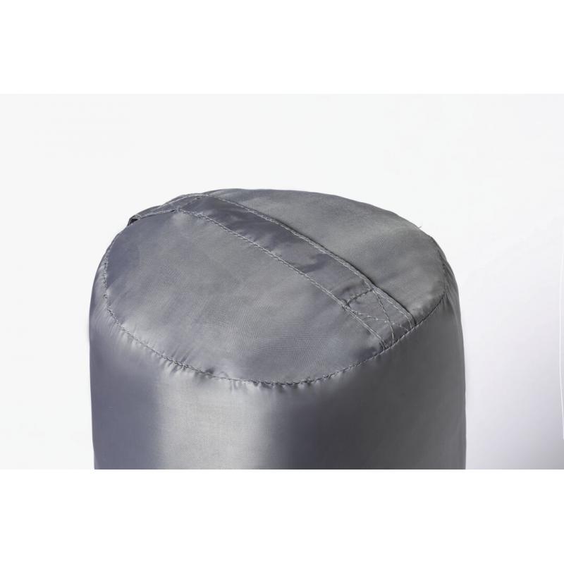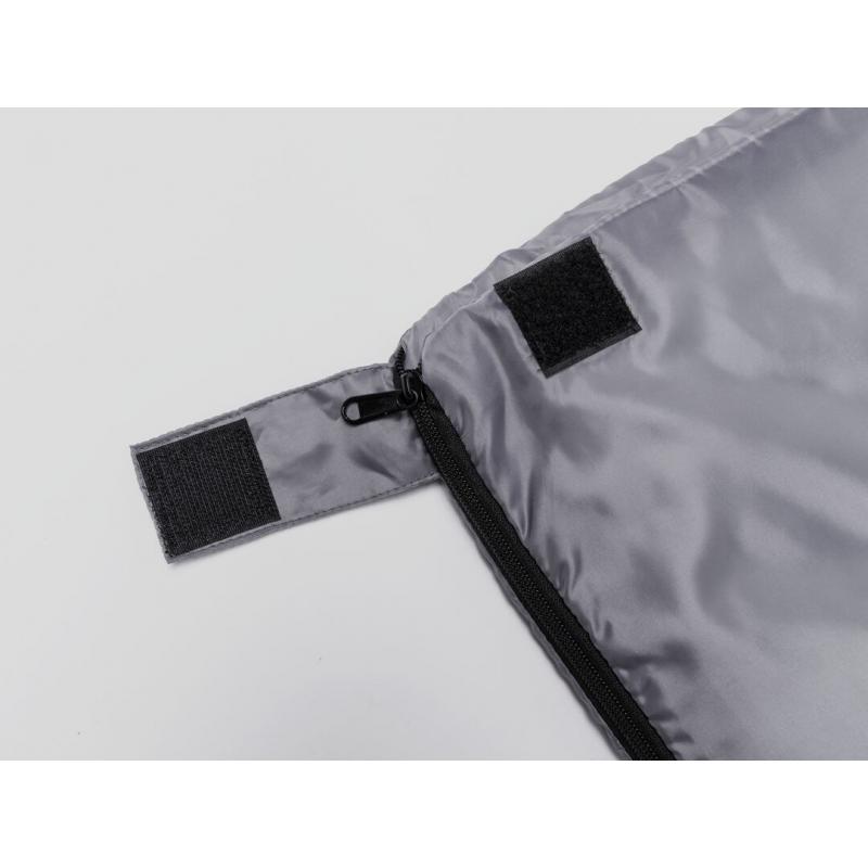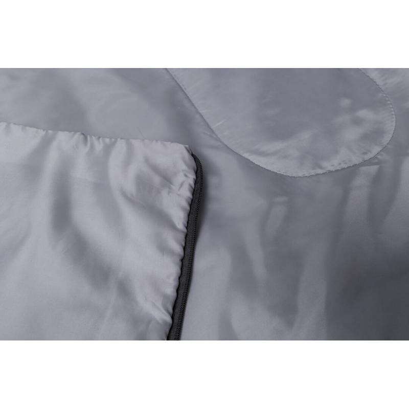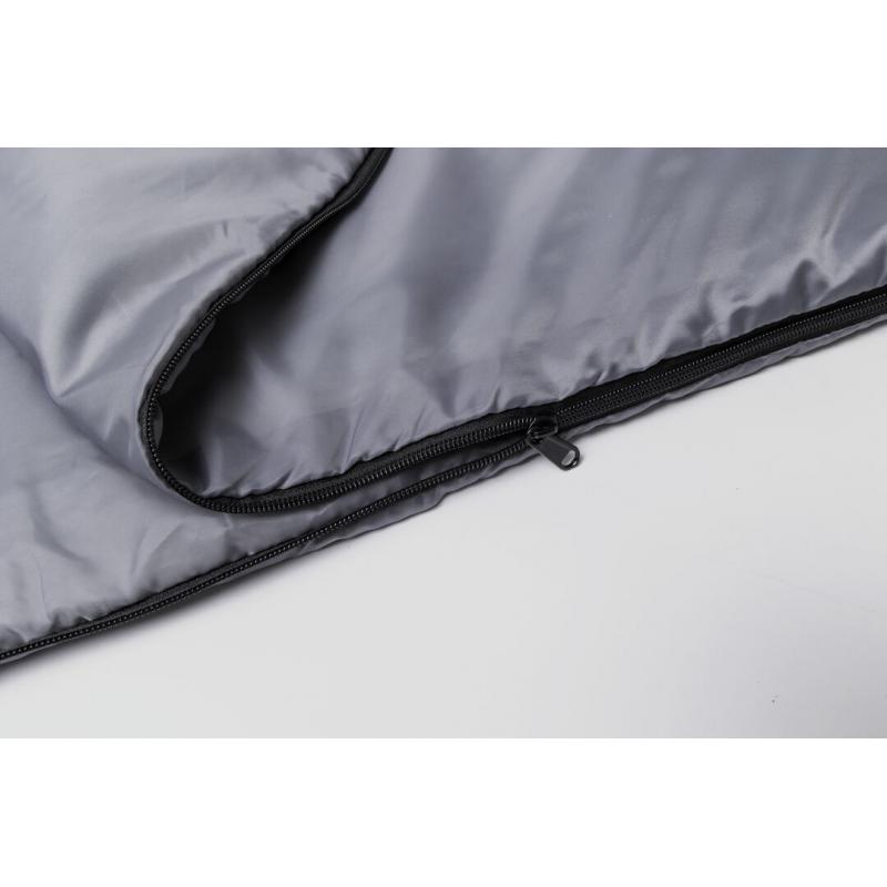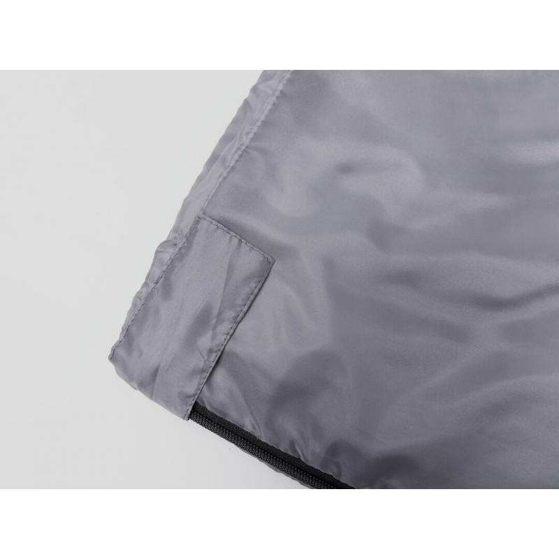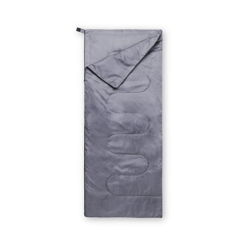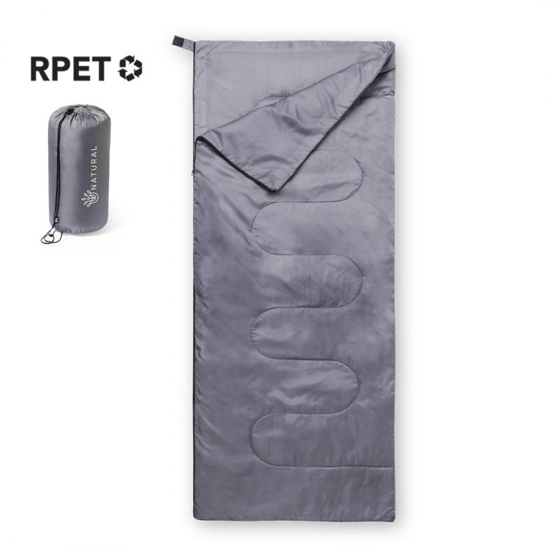 Saco de dormir fabricado en resistente poliéster RPET 190T de agradable y cálido tacto, en color gris. Con grueso acolchado interior y cierre de cremallera de apertura total con doble tirador interior y exterior. Funda a juego en RPET, con cierre de cordón, ajustador y etiqueta exterior con distintivo RPET. El material RPET se elabora a partir de plástico reciclado, para así fomentar la reutilización de residuos plásticos y ayudar a la sostenibilidad del planeta.