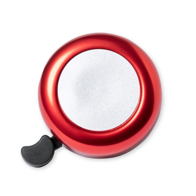 Timbre para bicicleta fabricado en resistente aluminio de acabado brillo. Con ajuste de seguridad para manillar y disponible en variada gama de colores.