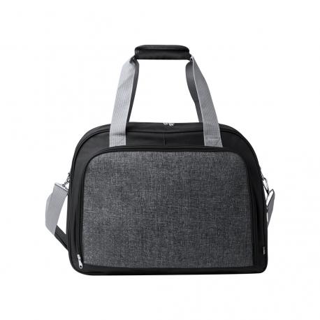 Bolso de gran capacidad fabricado en resistente RPET 600D. Cuenta con cierre de cremallera de doble asa de mano con cierre de velcro, y un bolsillo frontal con cierre de cremallera. Dispone de asa ajustable para un cómodo transporte con enganche y doble asa con cierre de velcro. Disponible en varios colores. Incluye etiqueta distintiva de RPET. Presentado en una bolsa individual reciclada.El material RPET se elabora a partir de plástico reciclado, para así fomentar la reutilización de residuos plásticos y ayudar a la sostenibilidad del planeta.