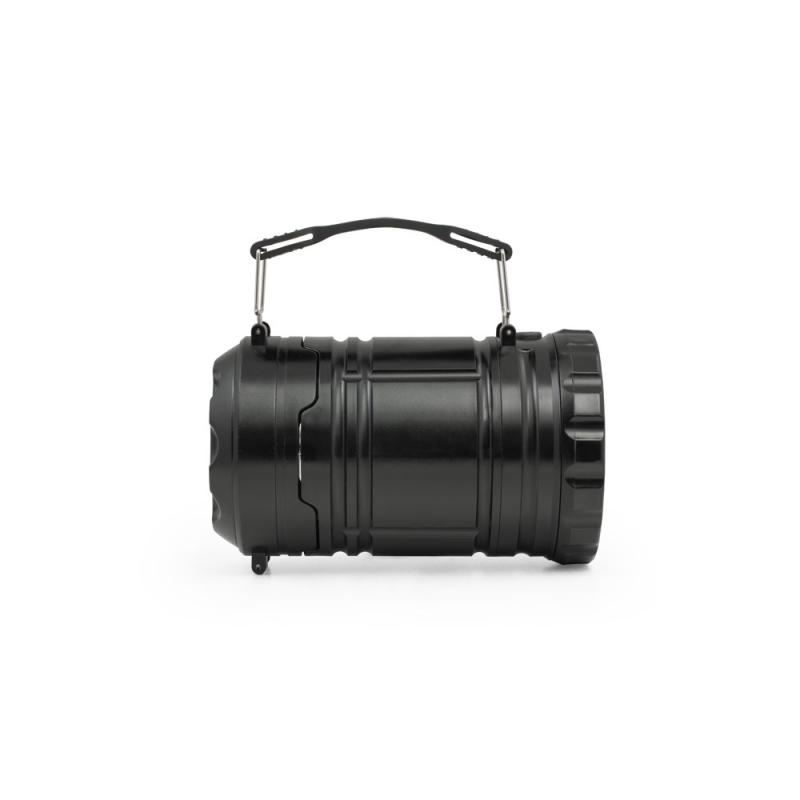 Linterna 2 en 1 en ABS y PS. 2 modos de uso: lámpara de exterior o de camping, que permite iluminar grandes superficies o como farol mediante el asa lateral también extraíble. La linterna dispone de led COB (200 lúmenes) y LED de 1W. Ideal para camping o actividades al aire libre. Incluye una lámpara LED de 1 W, tira de sujeción y 3 pilas AA. Suministrado en una caja de regaloRecipiente :