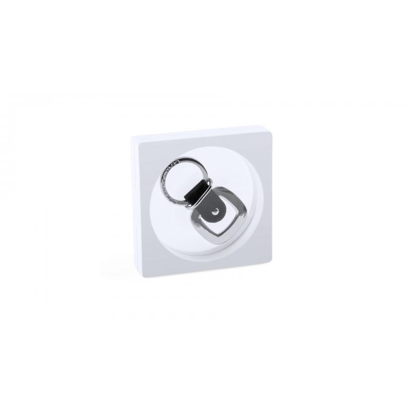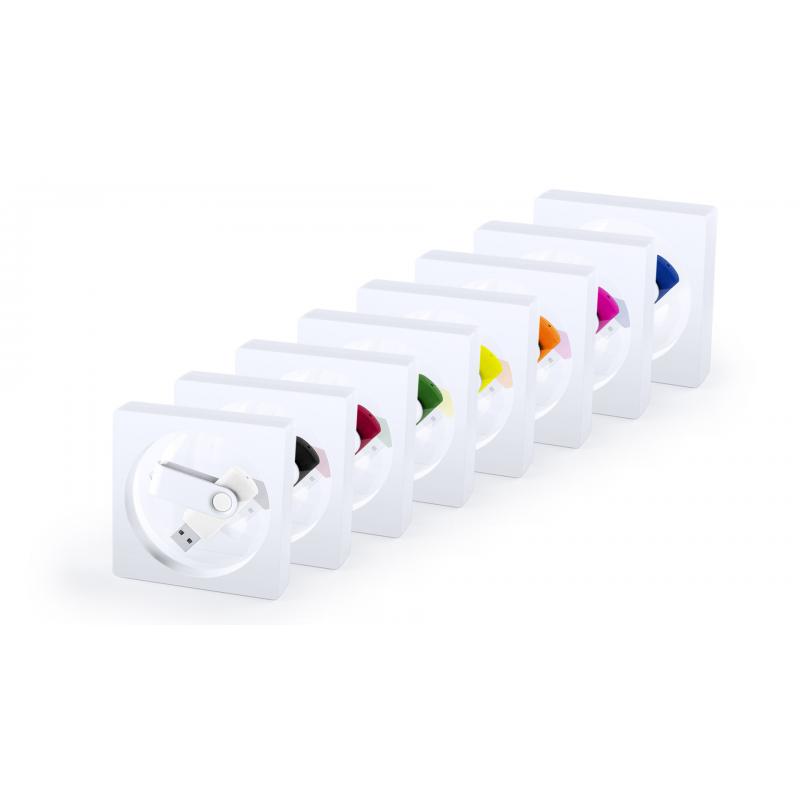 Estuche para memoria USB con ventana de film transparente, de atrevido diseño y elegante acabado en color blanco.