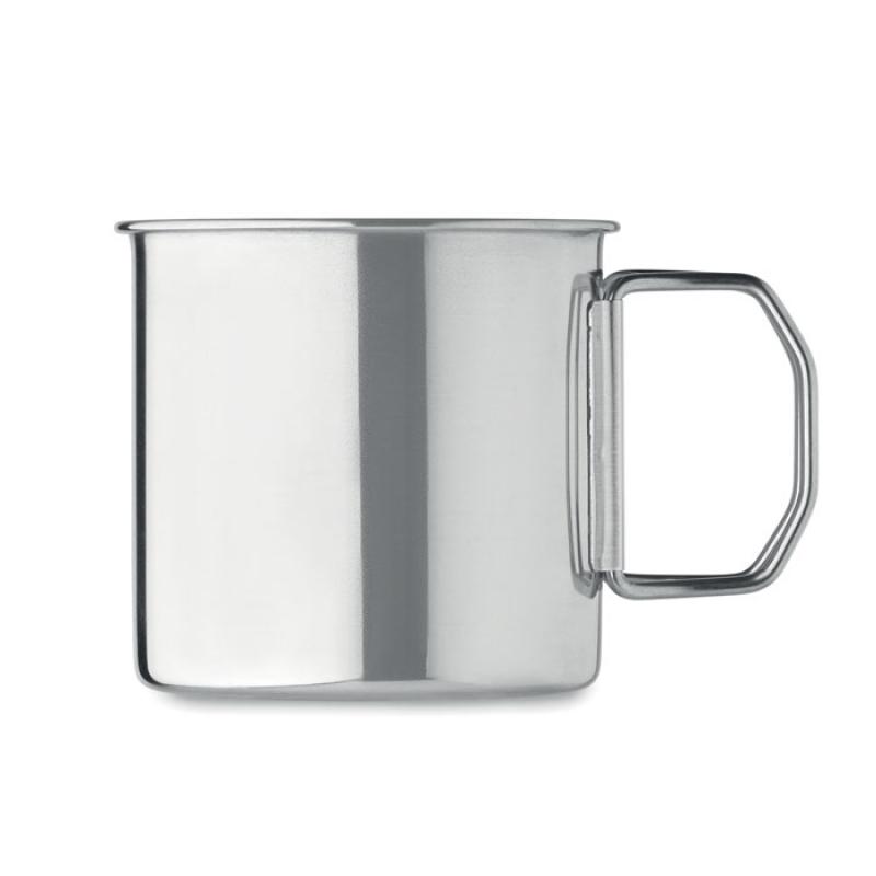 Taza de acero inoxidable de pared simple con asa plegable. Capacidad: 330 ml.Recipiente :