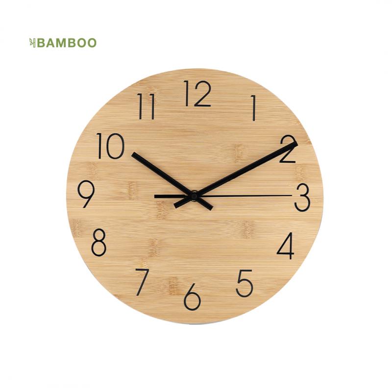 Reloj de pared en bambú natural, con números y dial metálico de color negro. Alimentación a pilas (1xAA no incluida).Materiales como el Bambú fomentan la utilización de materias primas naturales reduciendo las emisiones contaminantes. Además, el bambú proviene de una planta de gran resistencia y versatilidad, con crecimiento y regeneración rápida, siendo una excelente alternativa al uso de madera tradicional.