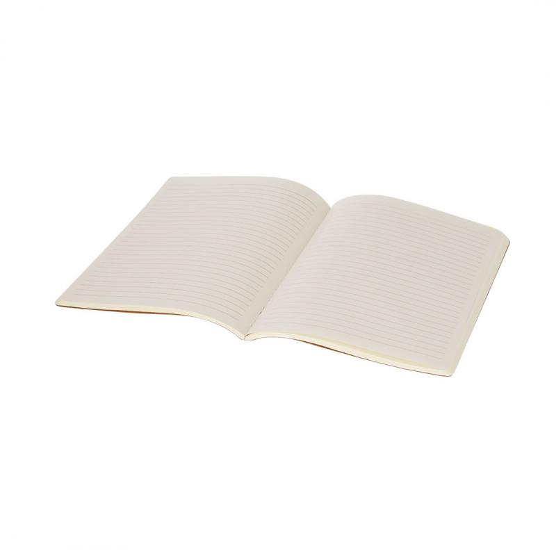 Libreta fabricada en PU reciclado, con detalle cosido a juego en el lomo. Incluye 60 hojas en color crema a una raya.