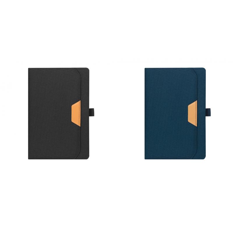 Bloc de notas en RPET, con un bolsillo exterior con distinguido detalle en PU marrón. Incluye 80 hojas de color crema a rayas y soporte elástico para bolígrafo a juego. Incluye distintivo RPET.El material RPET se elabora a partir de plástico reciclado, para así fomentar la reutilización de residuos plásticos y ayudar a la sostenibilidad del planeta.