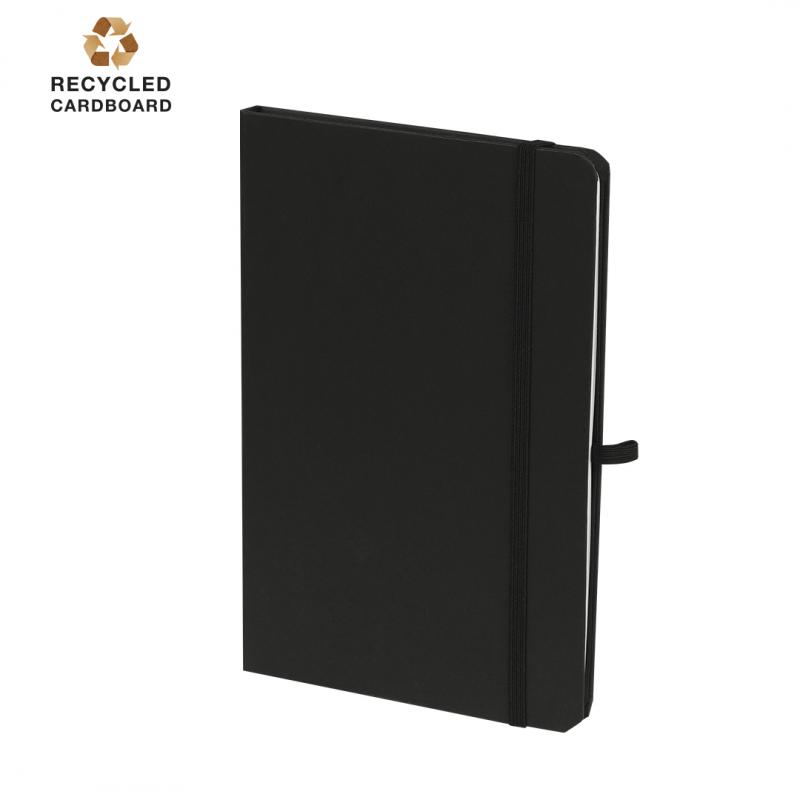 Bloc con notas adhesivas en cartón reciclado. Con tapas rígidas y 80 hojas lisas. En la cubierta interior de la portada incluye: 25 hojas adhesivas amarillas, 125 mini notas adhesivas de variados colores y práctico tarjetero en color kraft. Con soporte para bolígrafos y cinta elástica a juego.El Cartón Reciclado proviene del reaprovechamiento de excedente de fabricaciones y reciclaje de papel en el final de su vida útil, convirtiéndose en un lienzo ecológico y sostenible.