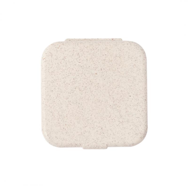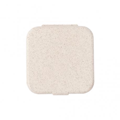 Útil portaclips fabricado en caña de trigo. Con cierre a presión y elaborada a partir de elementos reciclados, con 50 clips en su interior.La caña de trigo fomenta la utilización de materias primas naturales, reduciendo así las emisiones contaminantes.