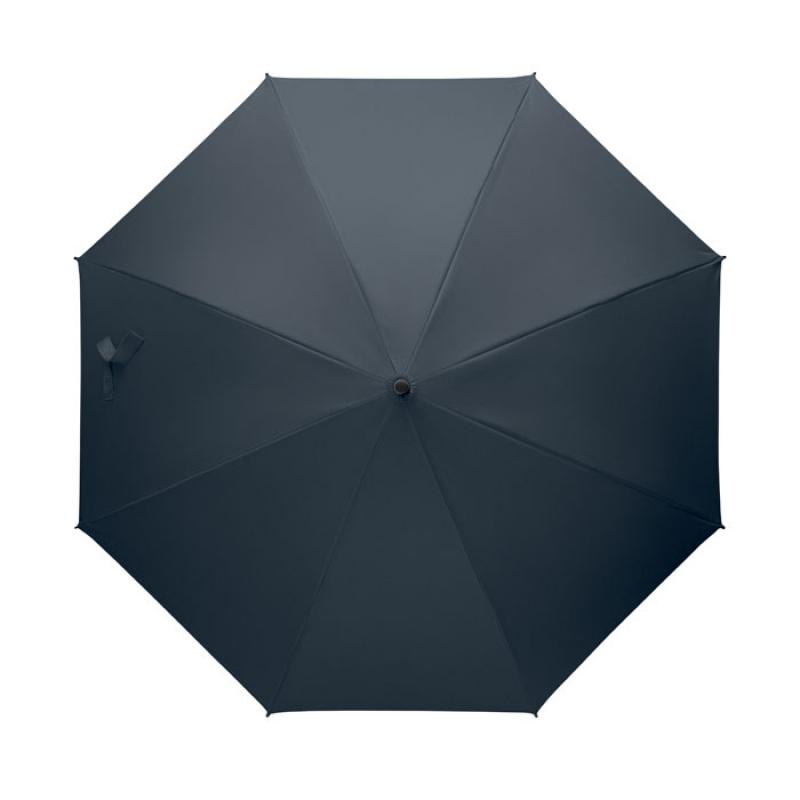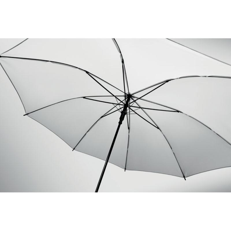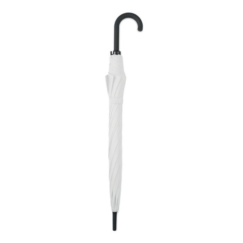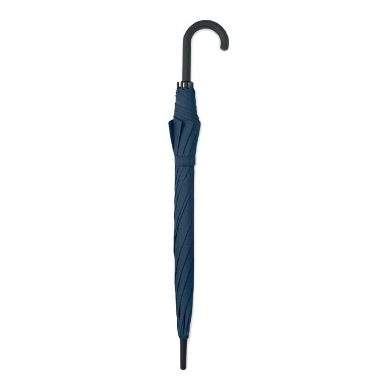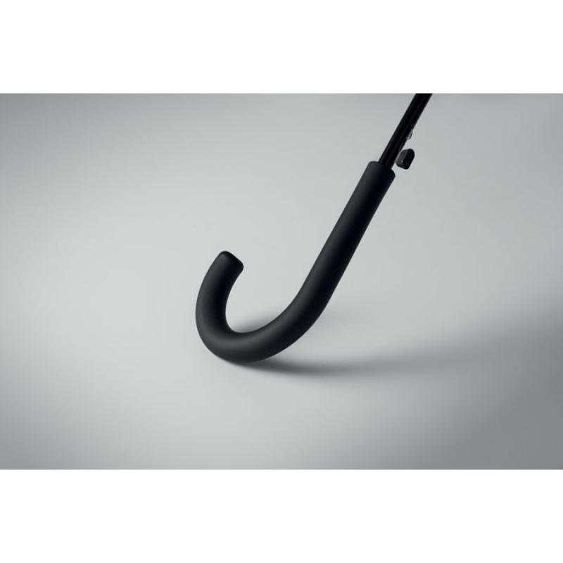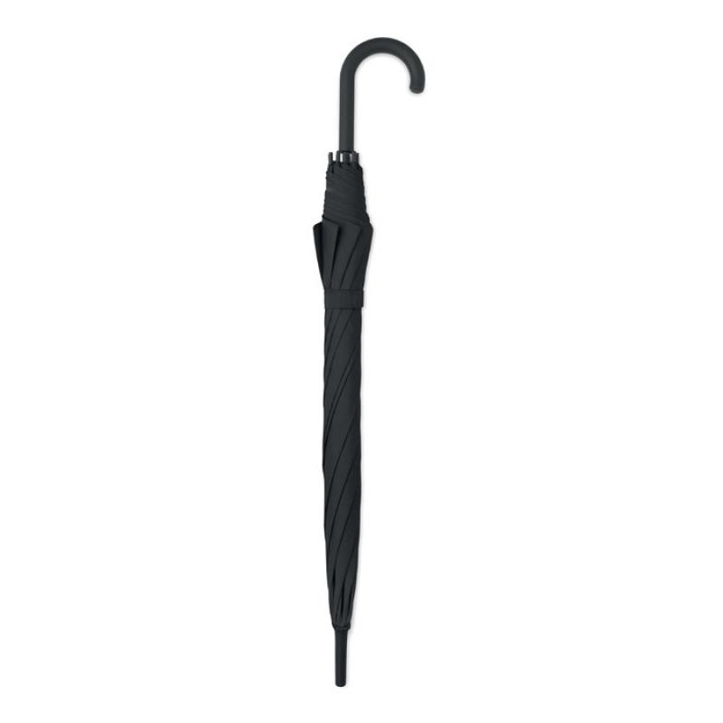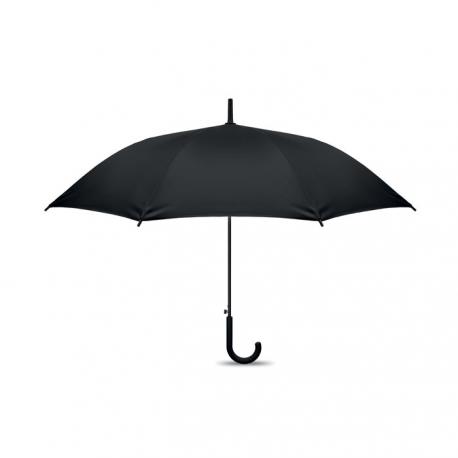 Paraguas recto de 23'' con apertura automática, estructura metálica chapada en negro, varillas de fibra de vidrio y paneles de tejido pongee 190T. Puntas y parte superior de plástico. Mango curvo de plástico PP engomado. Cierre manual.Recipiente :